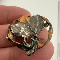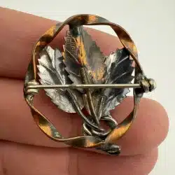 Unique Mixed Metal Sterling & Copper 3 Leaf Brooch Pin *Read Full Description*