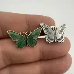 Set of Butterfly Lapel Hat Pins – One Green and One Silver Butterfly