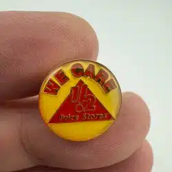 1!2 1/2 Price Stores We Care Pin – Red Triangle