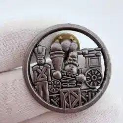 Collectible home, garden, and hobby-themed pins featuring gardening tools like sterling silver shovels, watering cans, and flower misters. Highlights also include novelty designs such as a red wagon, rainbow umbrella, and children under an umbrella enamel pin—perfect for gardening fans, hobby collectors, and vintage pin enthusiasts.