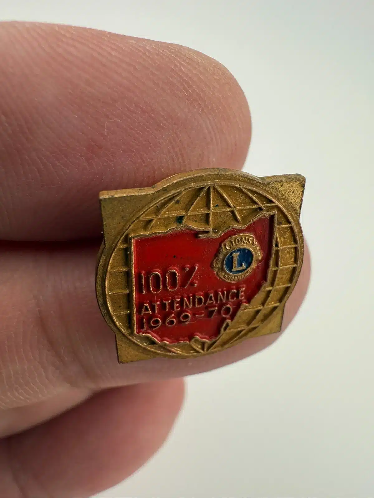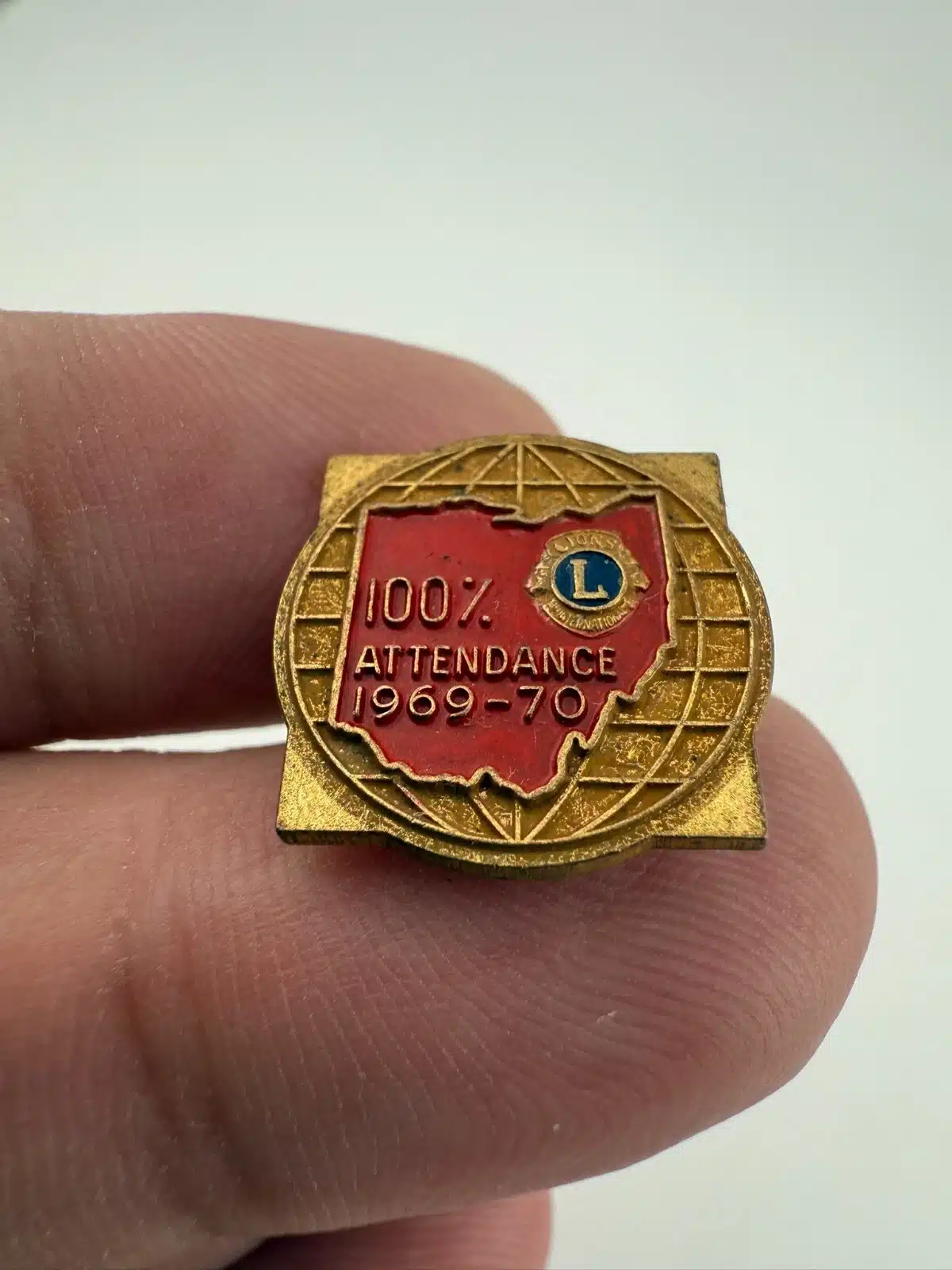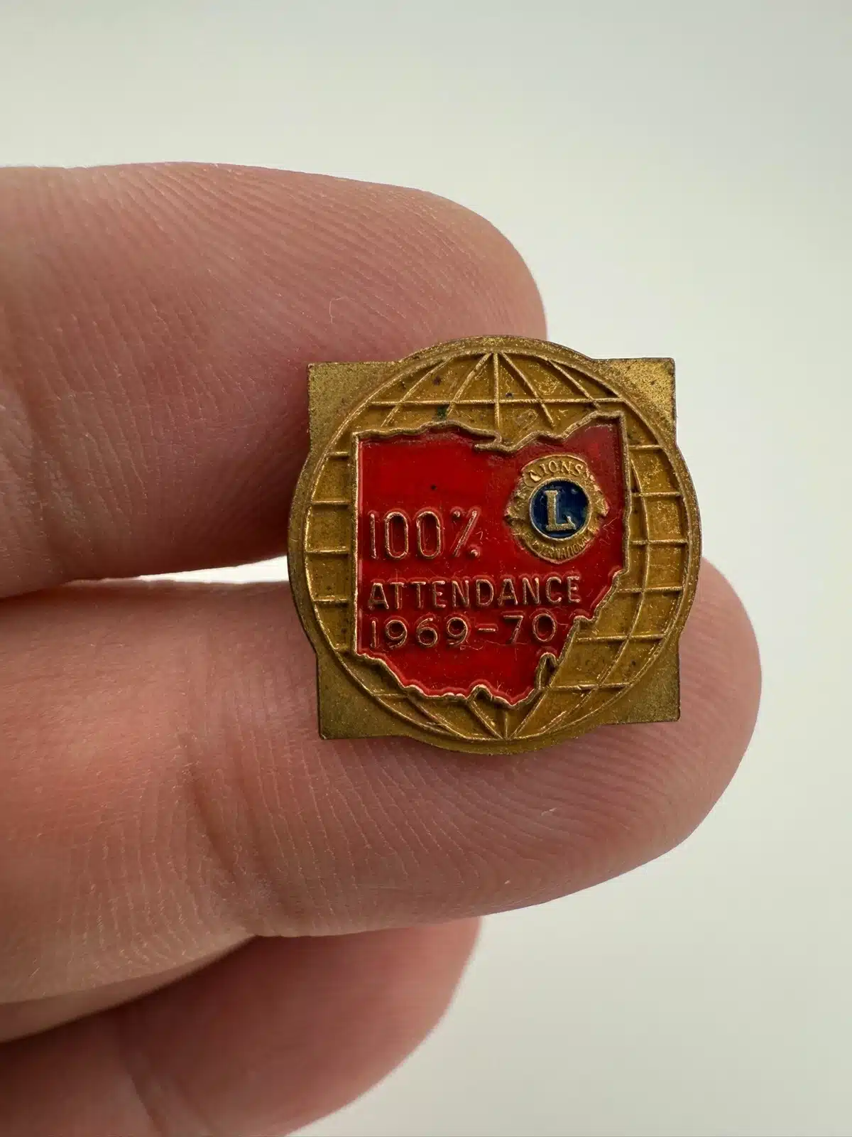 1969-1970 Ohio Lions Club Pin – 100% Attendance – Stamped W.R.BRYAN INT’L. PRES.