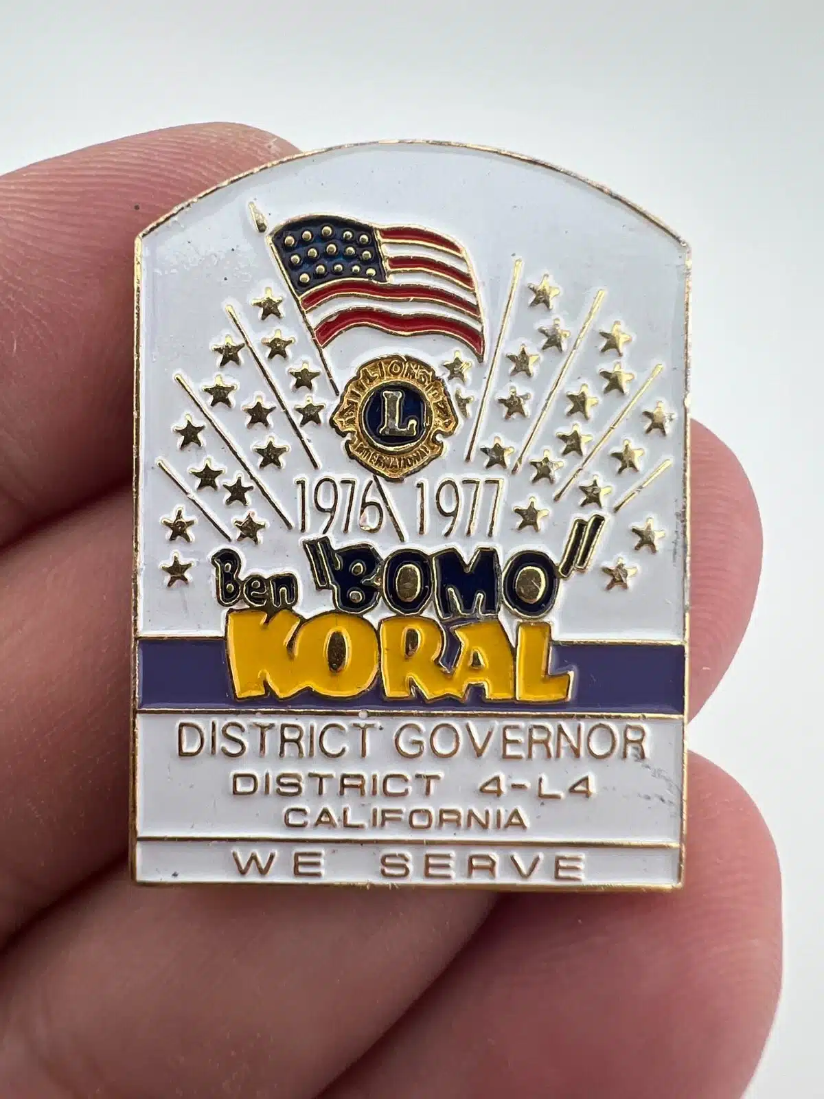 1976 – 1977 Ben “Bomo” Koral District Governor 4-L4 Lions Club Pin