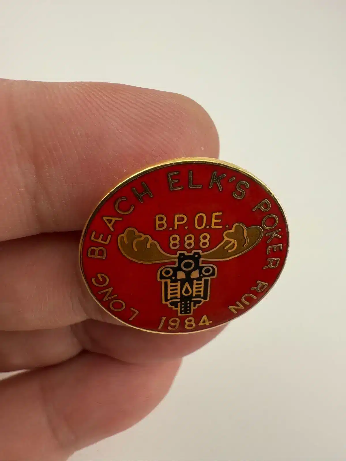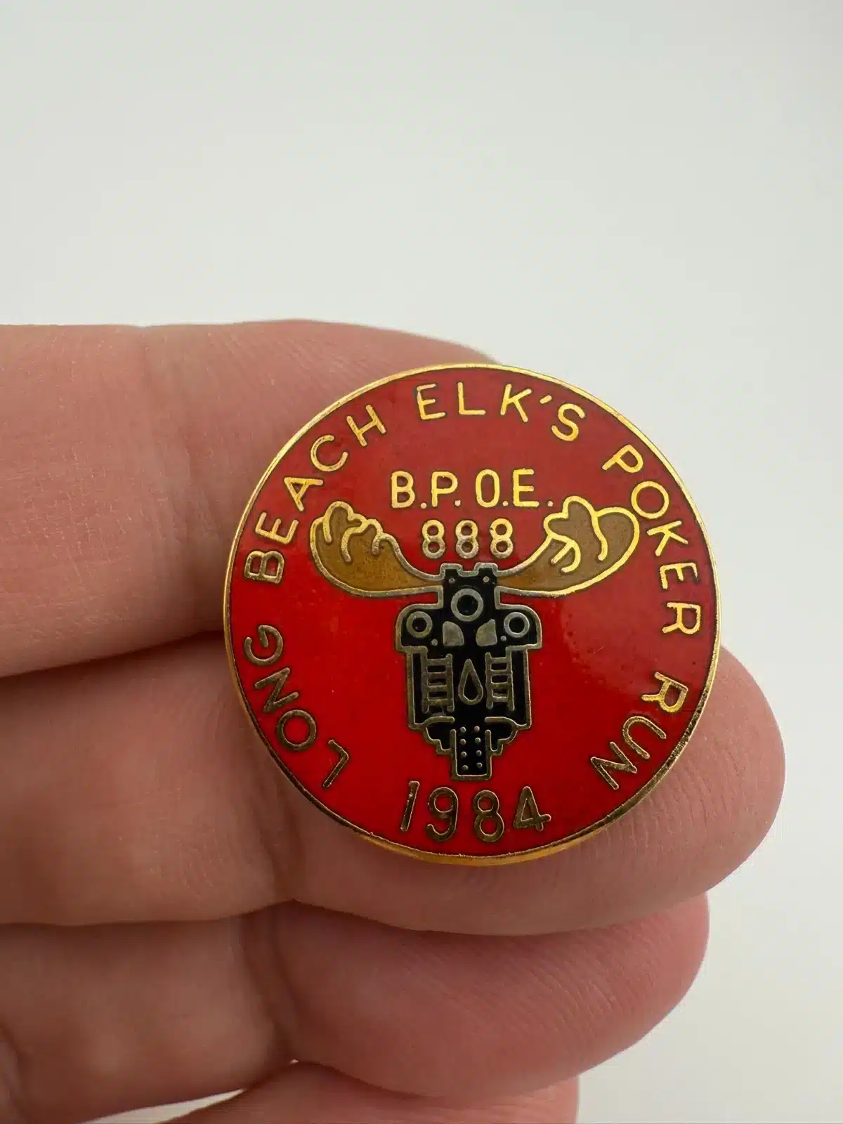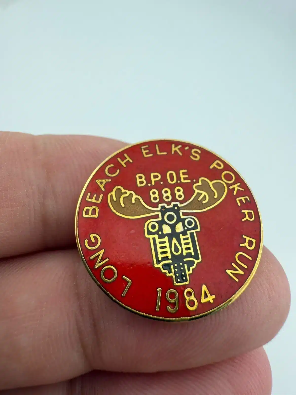 1984 Long Beach Elk’s Poker Run Lapel Hat Pin – BPOE 888 – Motorcycle Theme