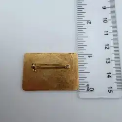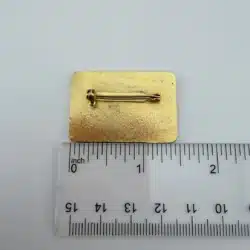 Measuring approximately 1.5 inches wide by 1 inch tall, the pin has a classic horizontal layout and stands out as a distinctive staff item.