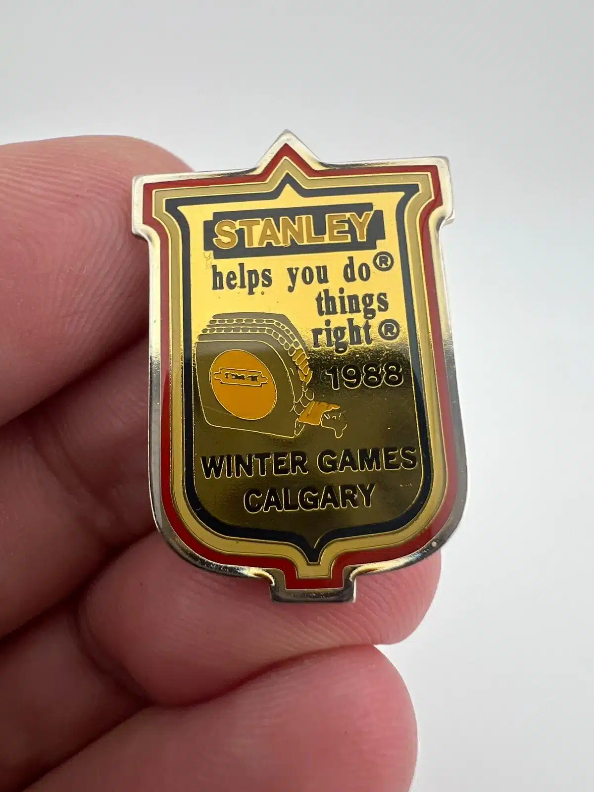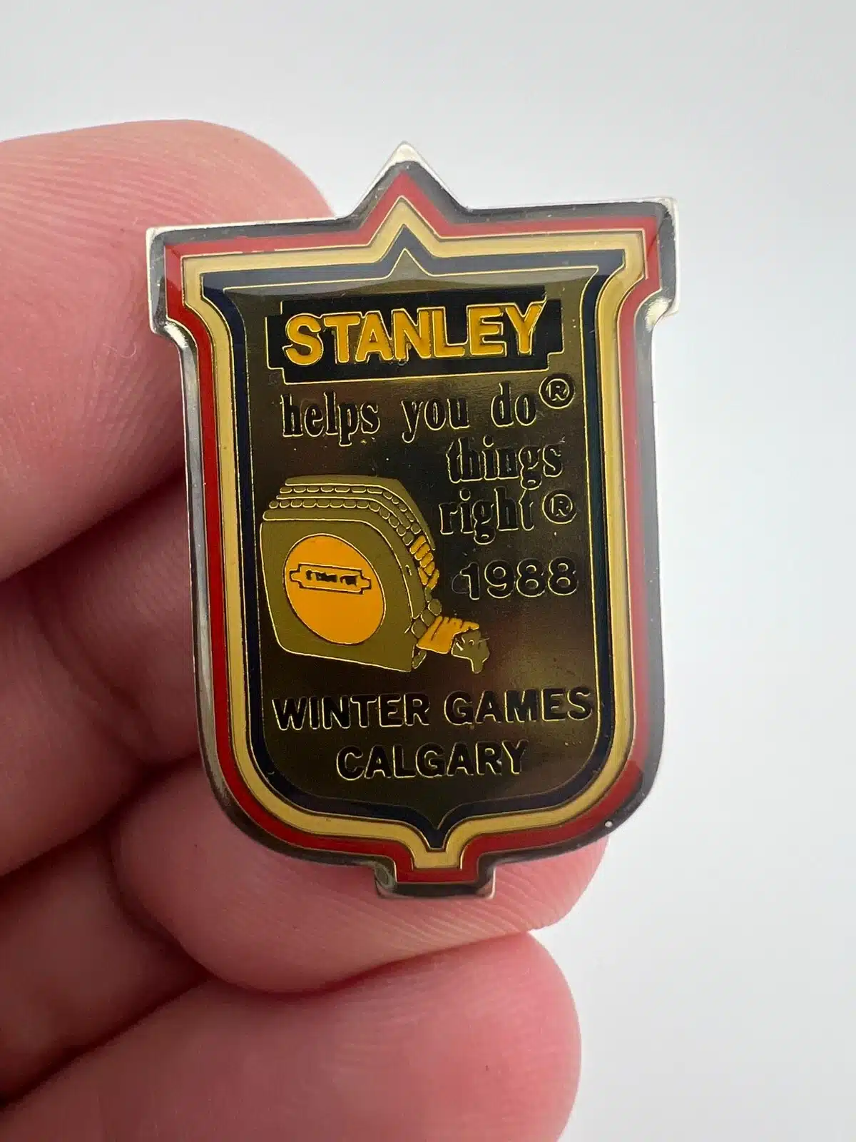 1988 Calgary Winter Olympic Games Stanley Brand Advertising Lapel Hat Pin