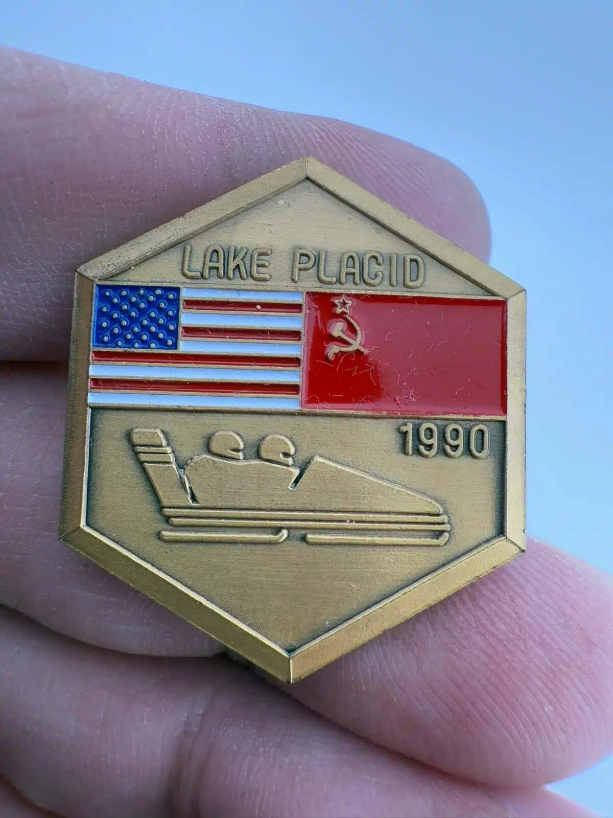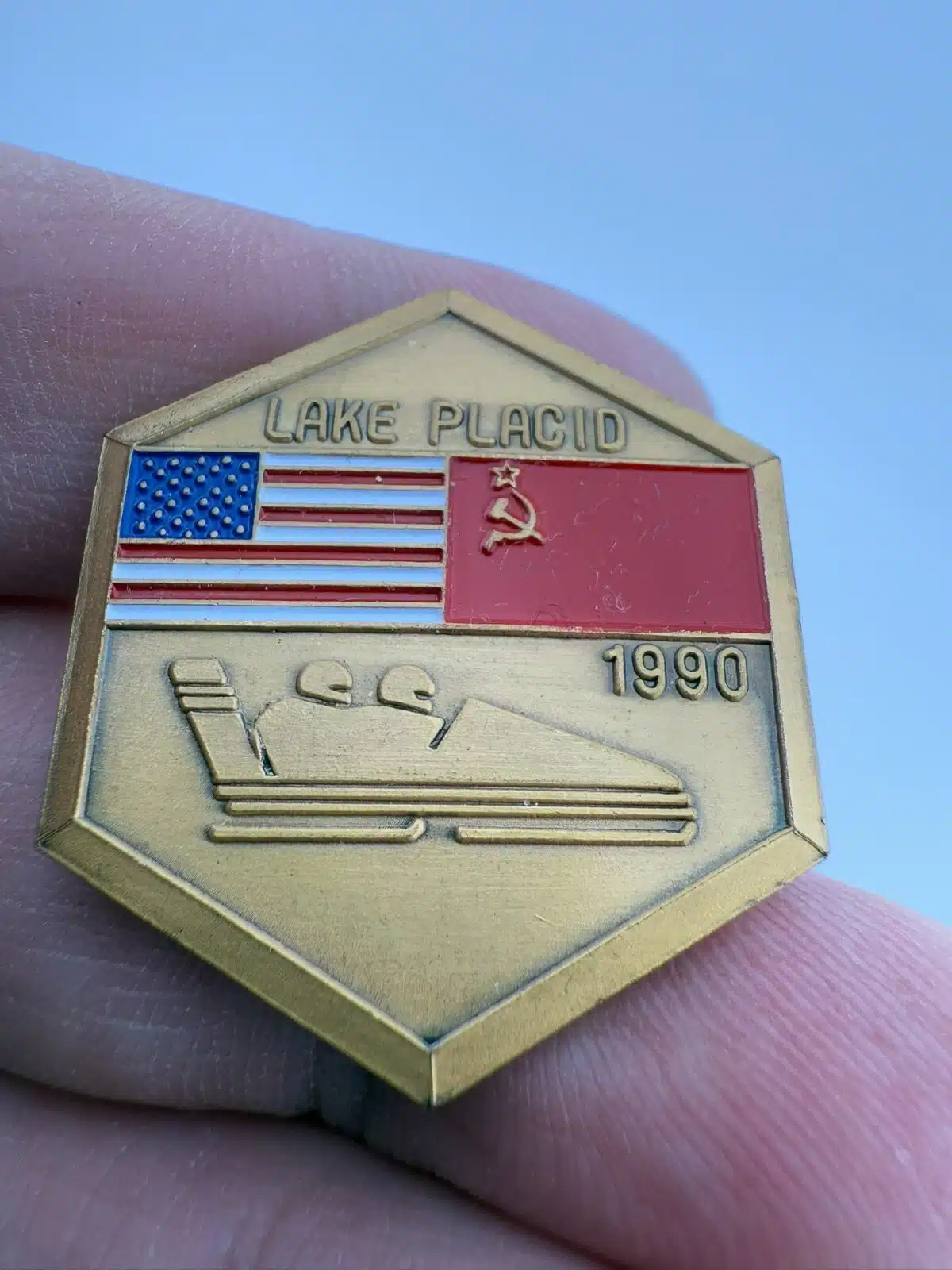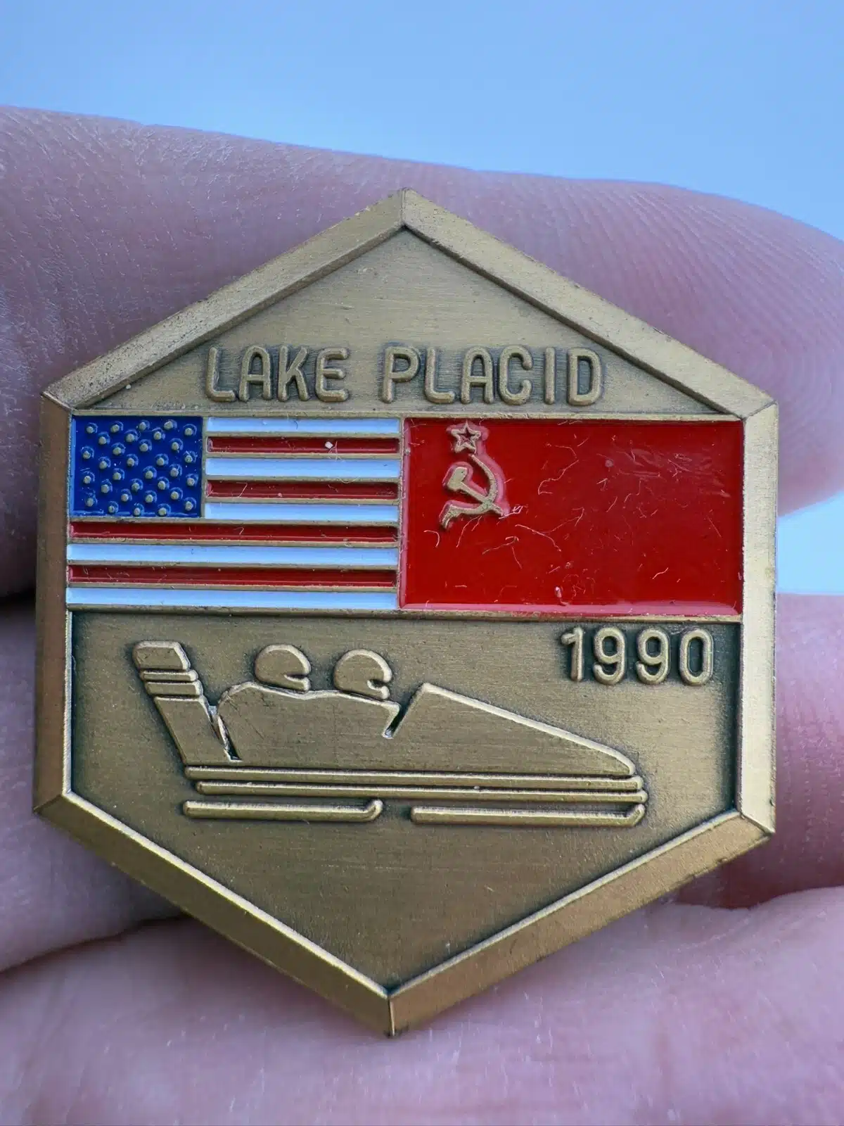 1990 Lake Placid Goodwill Games USA Soviet Union Bobsled Bobsleigh Team Pin