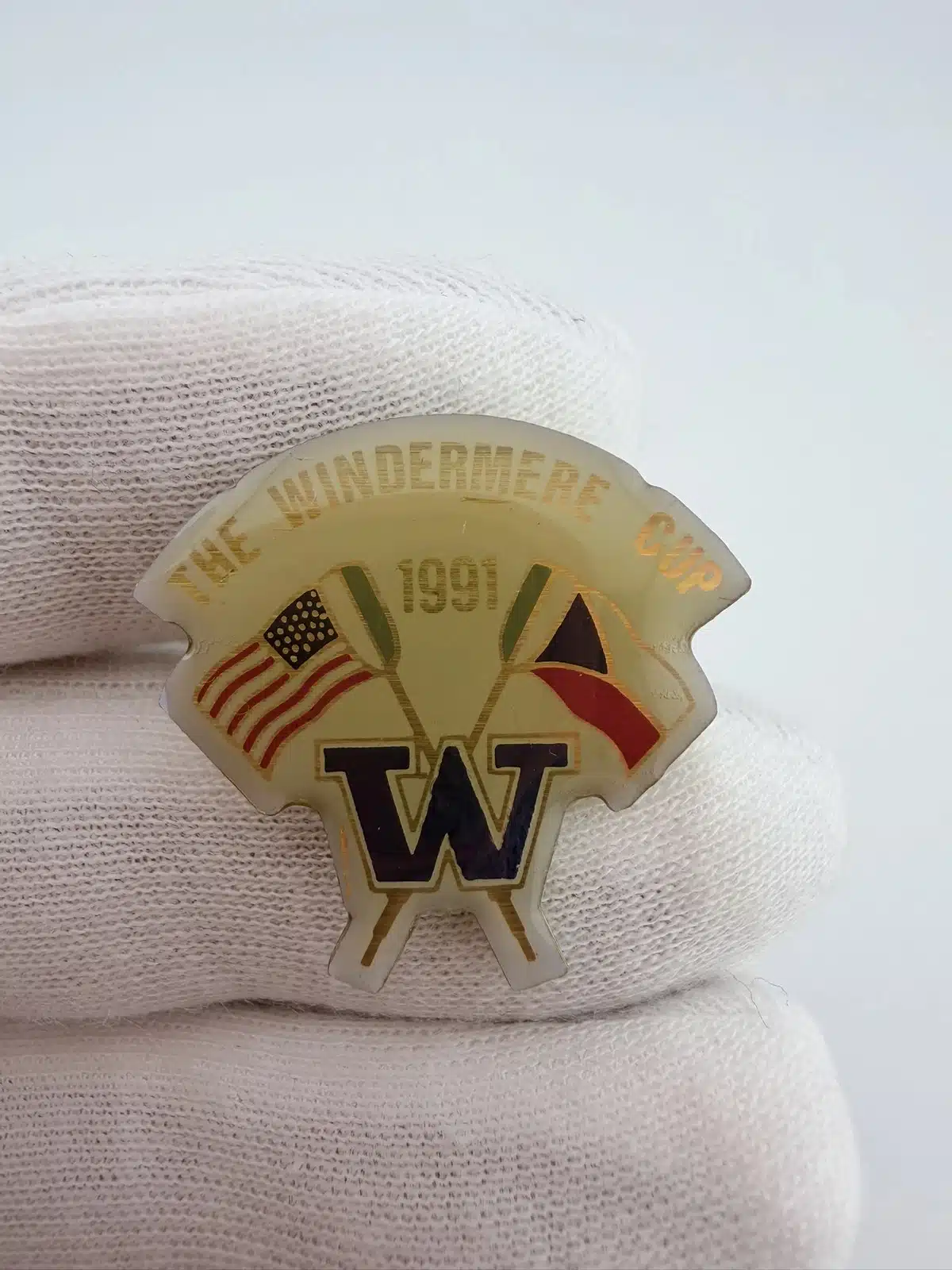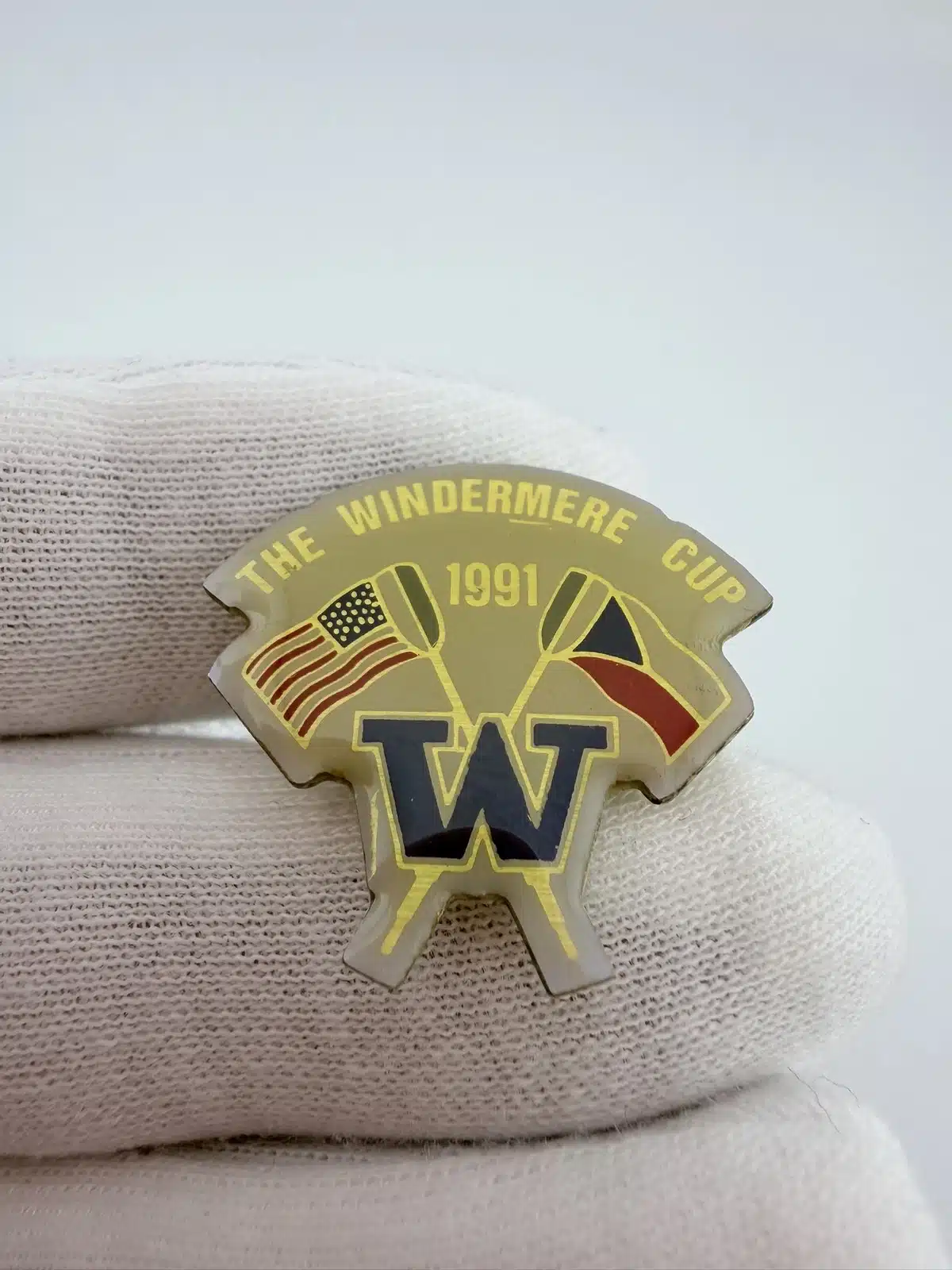 1991 The Windermere Cup Pin – Crossed Flags On Oars, UW Huskies Logo