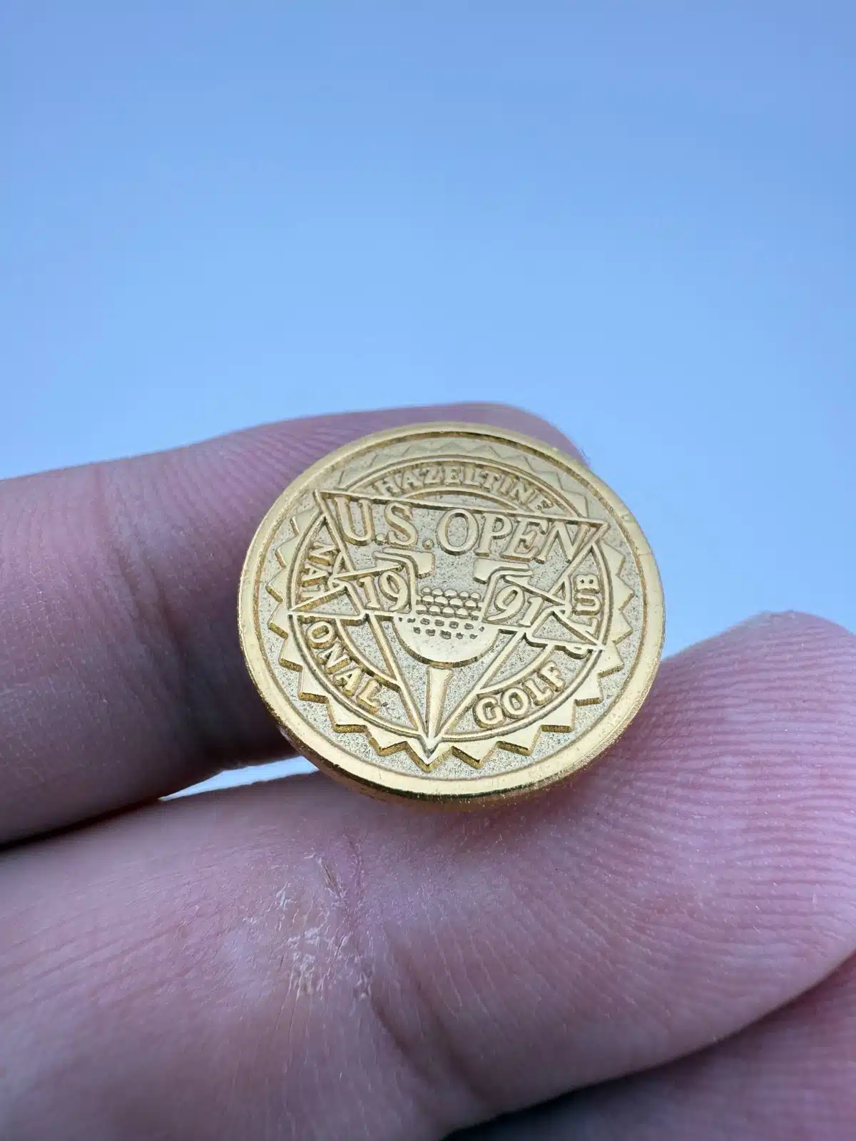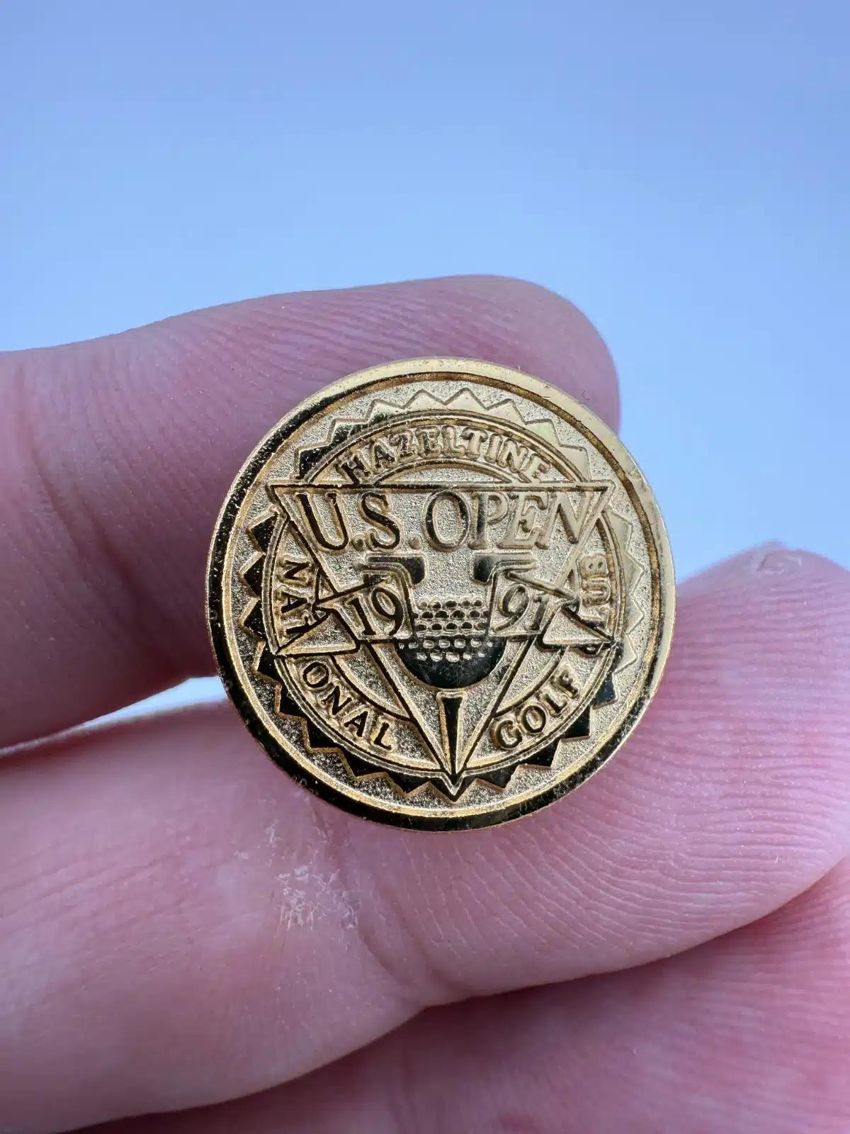 The 1991 U.S. Open was played at Hazeltine National Golf Club in Chaska, Minnesota. The championship was won by Payne Stewart, and commemorative items such as this pin were produced to mark the event.