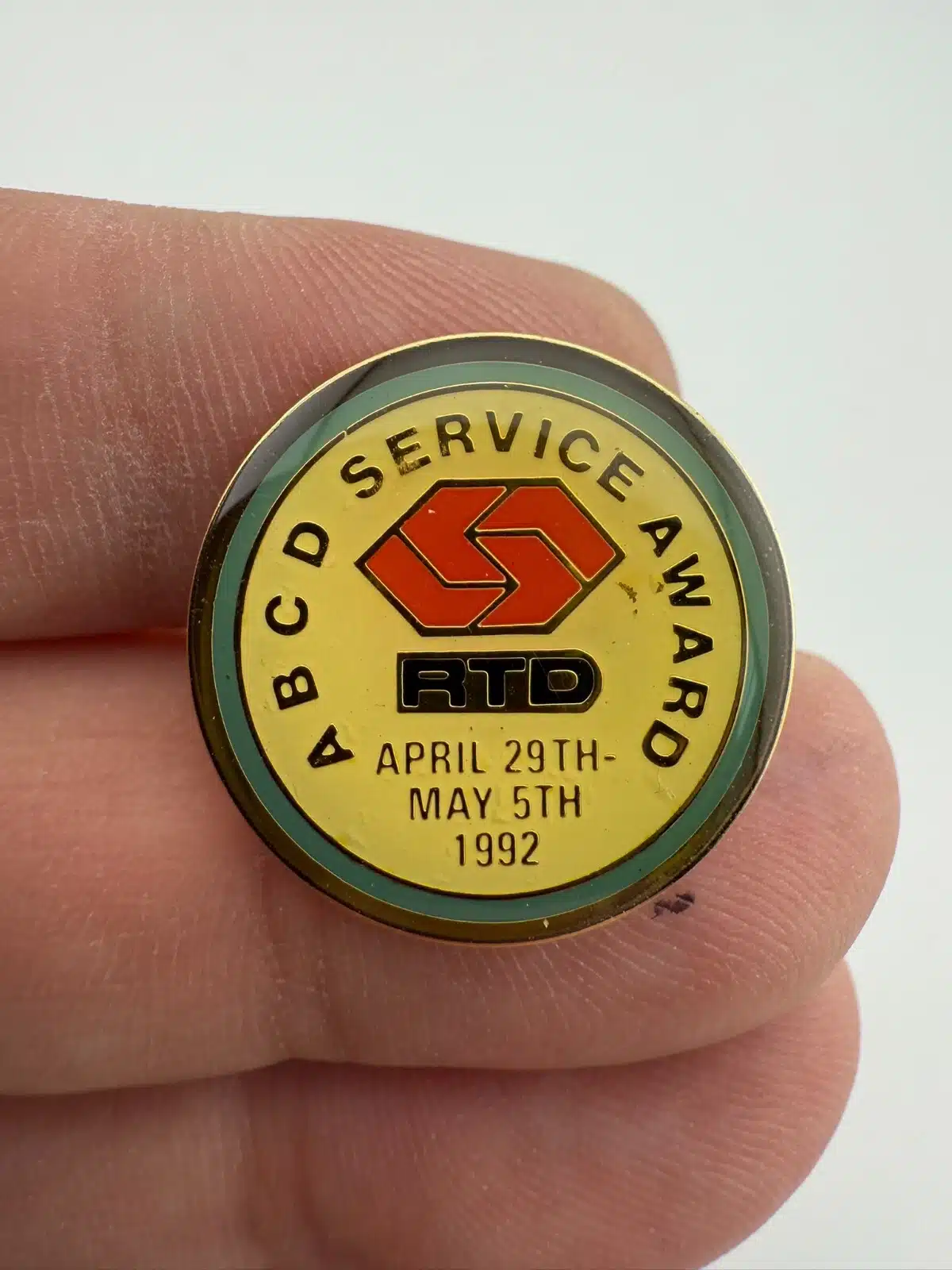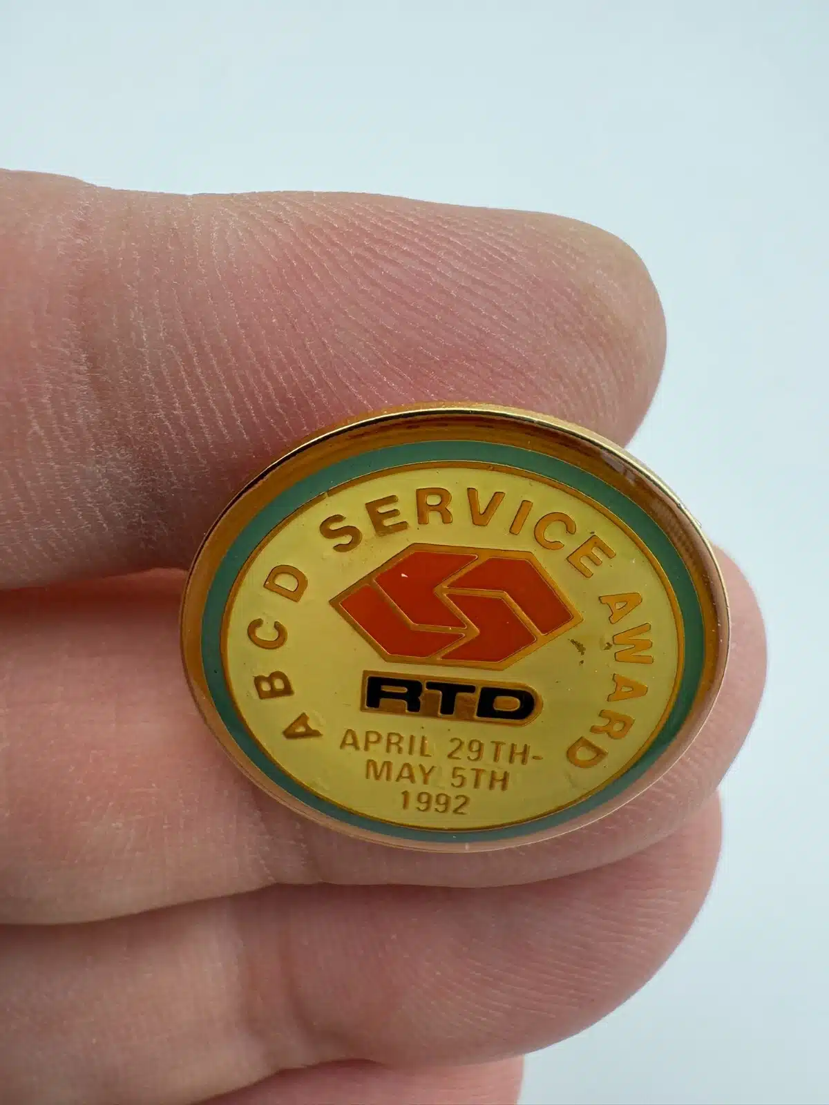 1992 SCRTD ABCD Service Award Pin *note: production flaw*