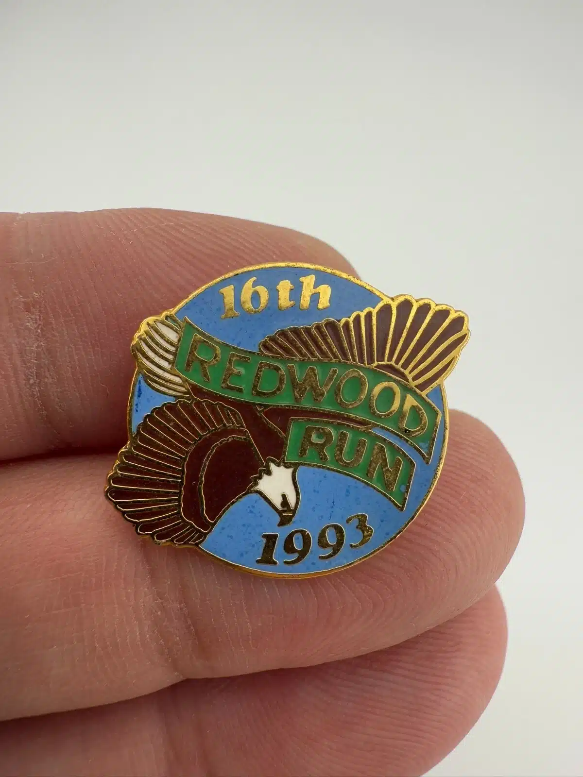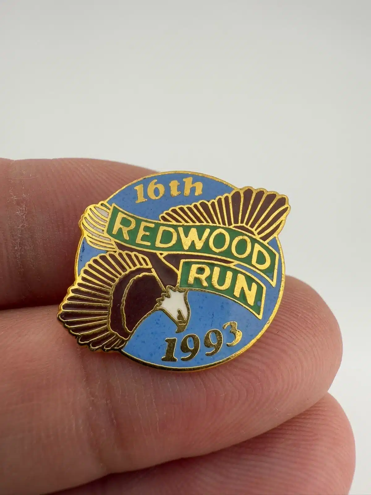1993 Redwood Run Motorcycle Rally Screwback Pin – *MISSING SCREWBACK CLASP*