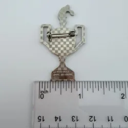 The pin measures approximately 1 inch in width by 2 inches in height.