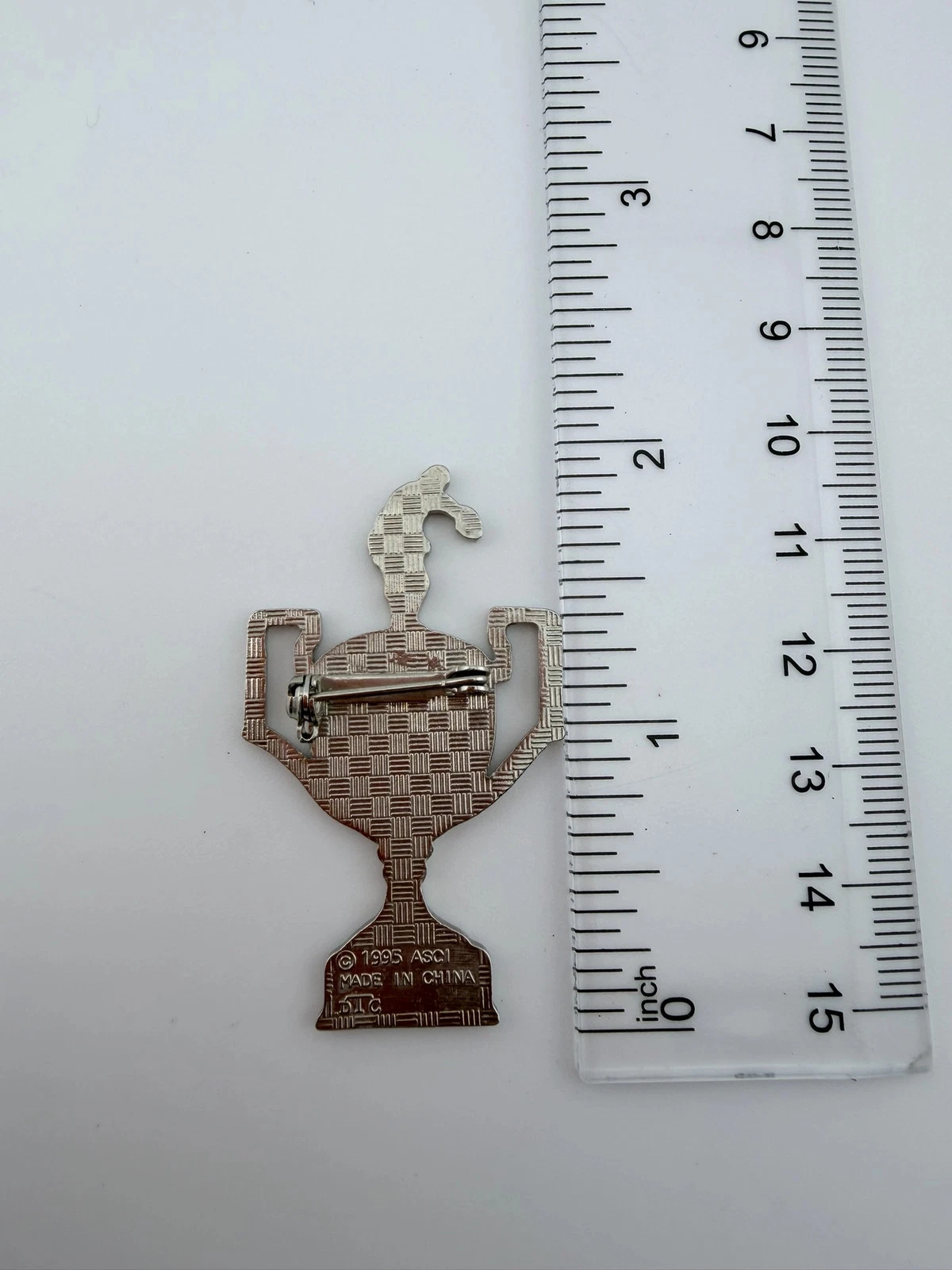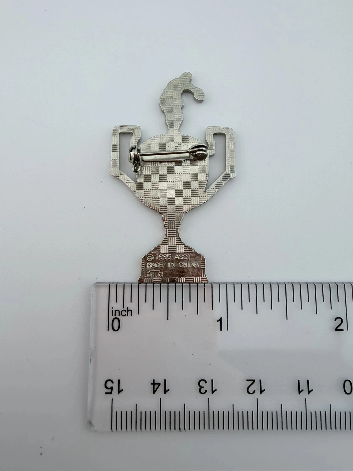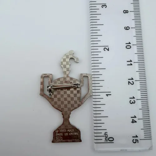 The pin measures approximately 1 inch in width by 2 inches in height.