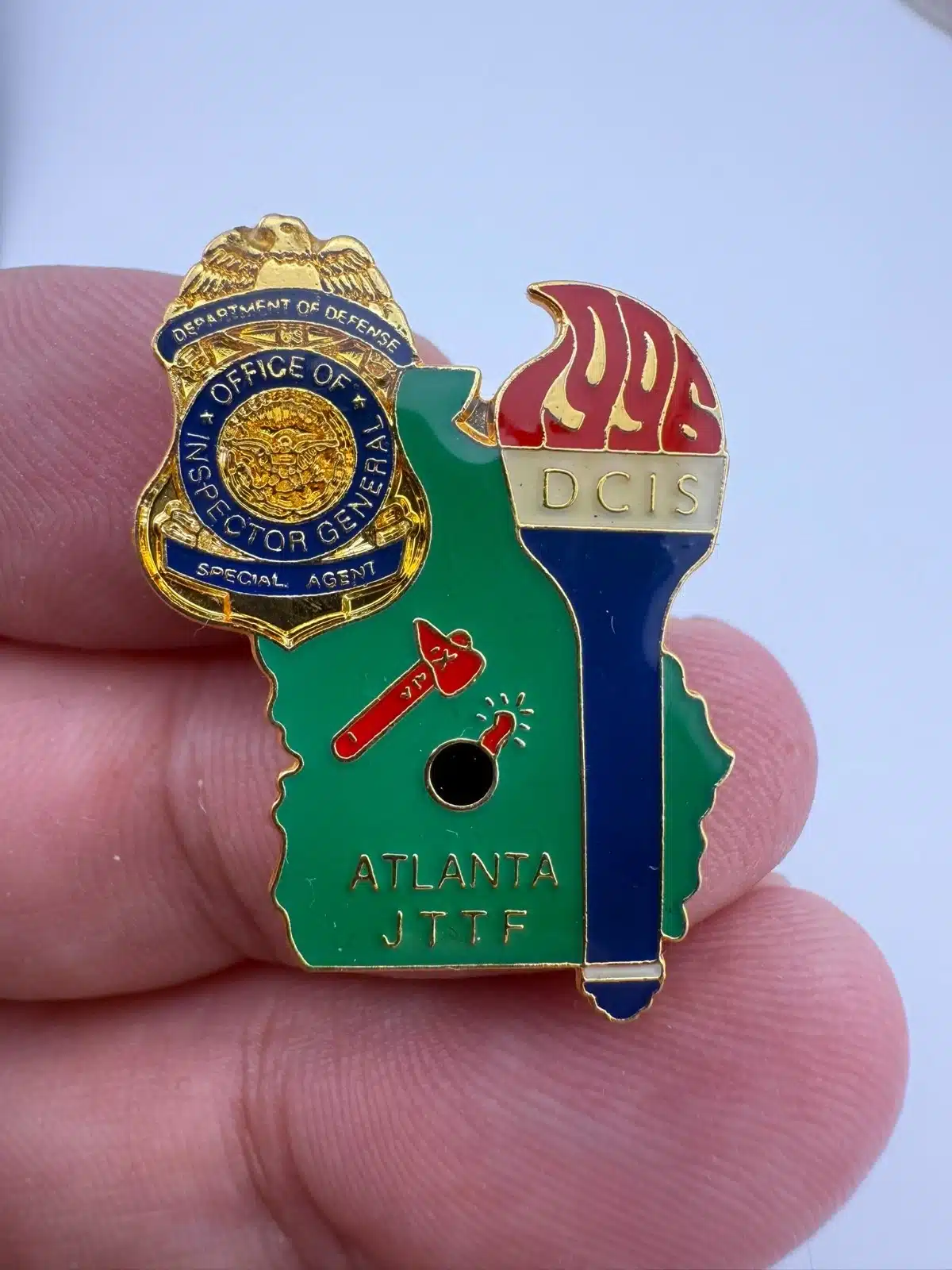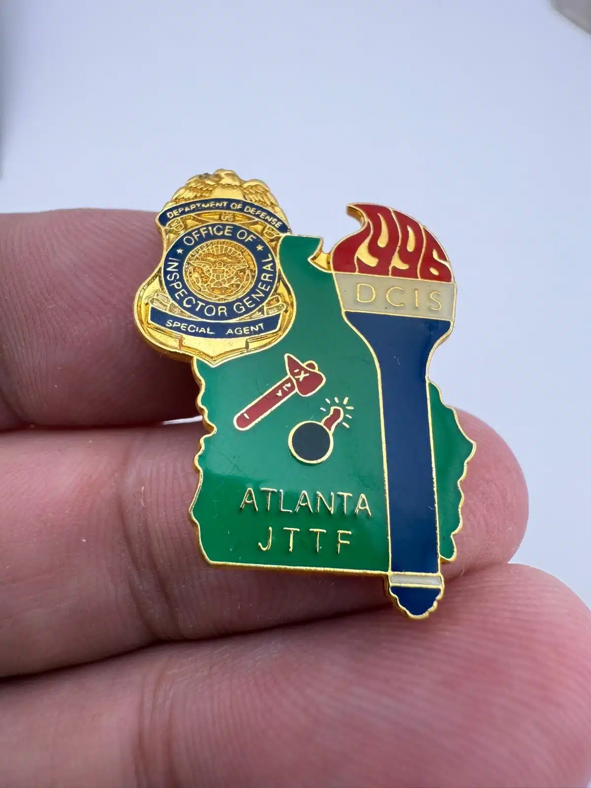 1996 ATLANTA JTTF DCIS DOD OIG Special Agent Pin - Olympic Torch quantity