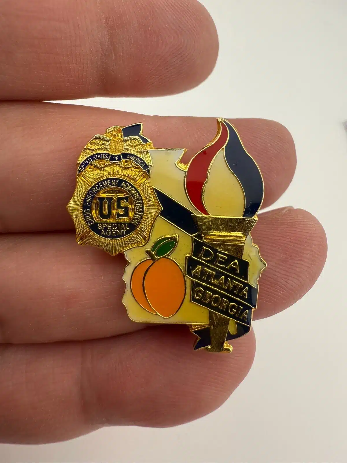 1996 Atlanta Olympics DEA Badge Peach Torch Lapel Pin
