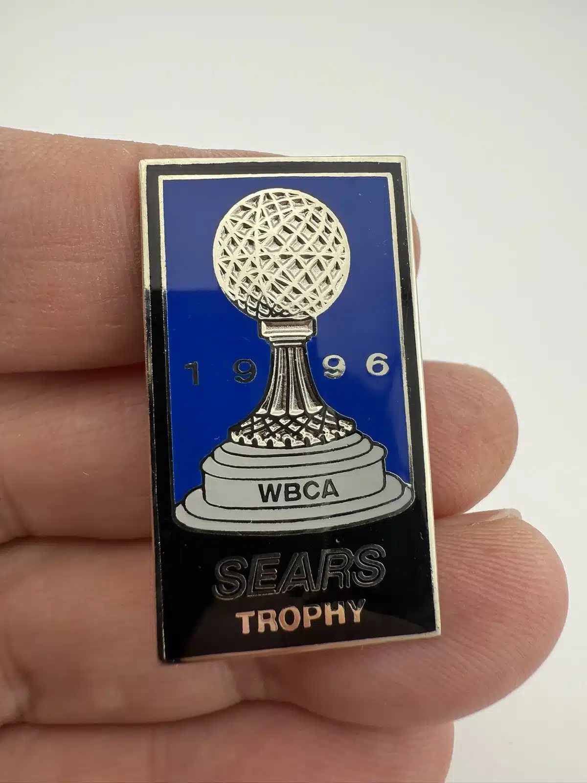 This lapel pin commemorates the 1996 Women’s Basketball Coaches Association Sears Trophy, featuring a detailed design that highlights the prestigious award’s significance in women’s collegiate basketball. The pin showcases the trophy’s iconic shape, symbolizing excellence in coaching and the advancement of women’s sports during this pivotal era.