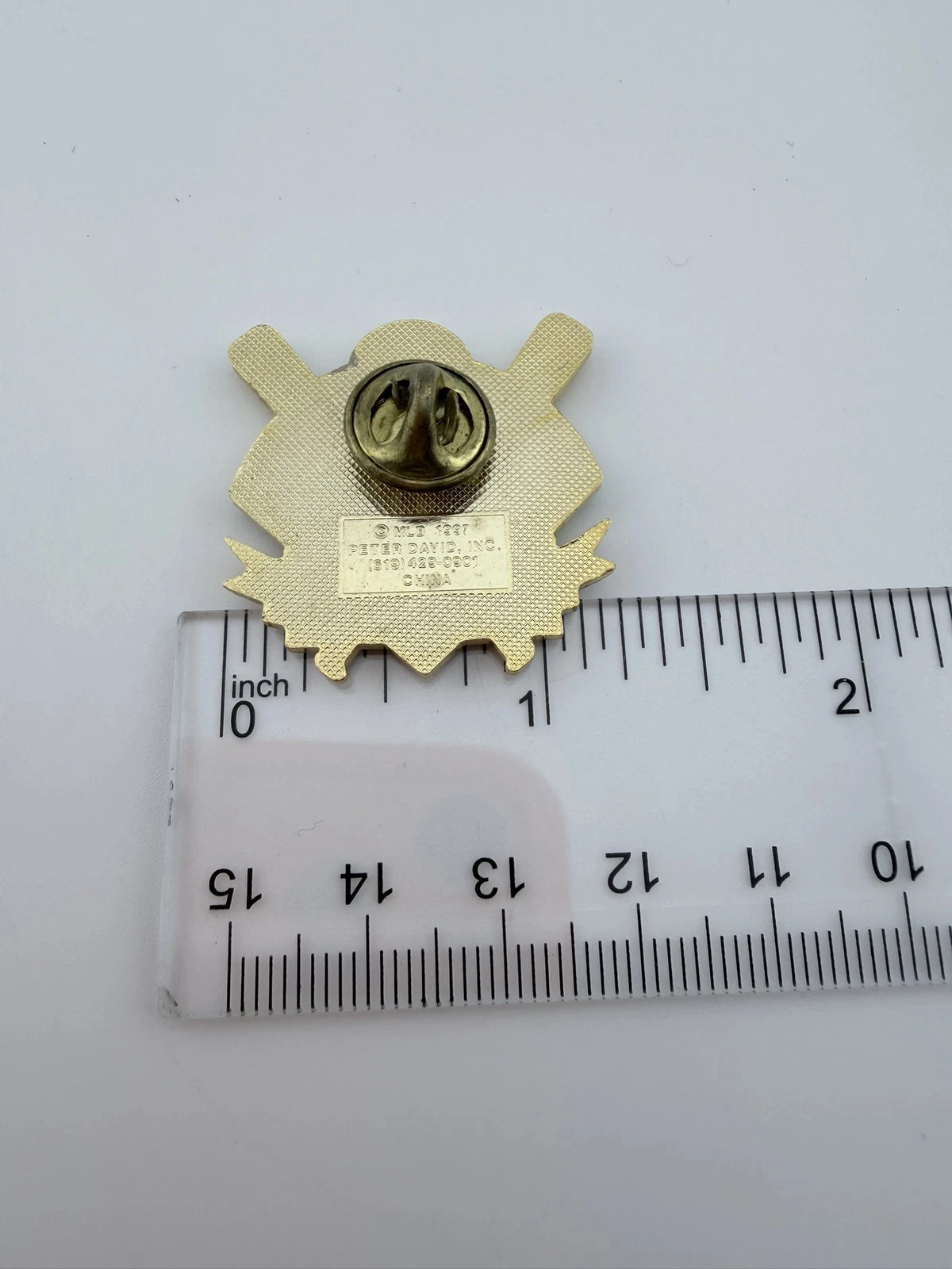 The pin measures approximately 1 1/4 inches in width by 1 1/4 inches in height.