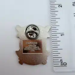 Pin measures just over 1 inch in width by 1.25 inches in height.
