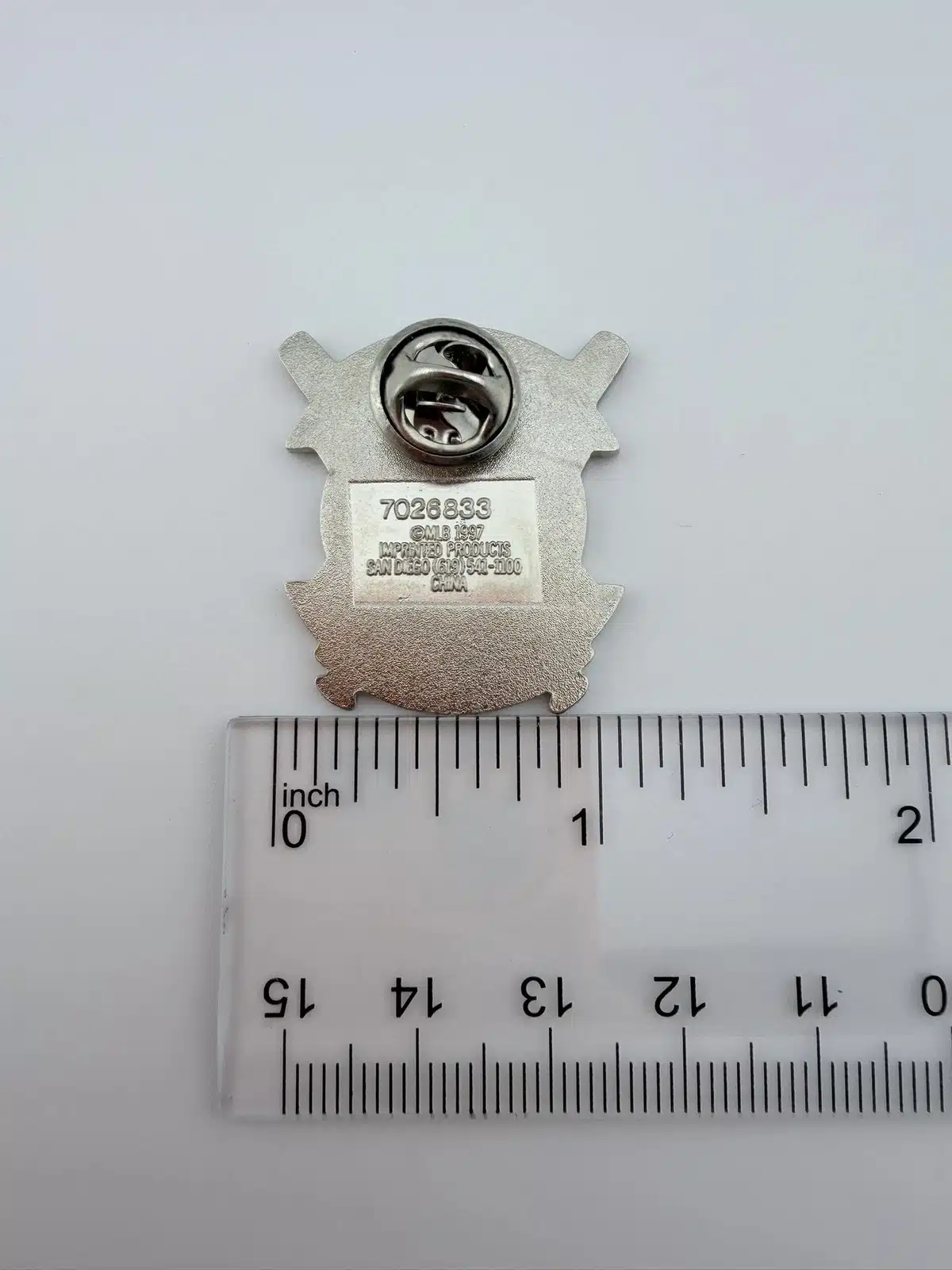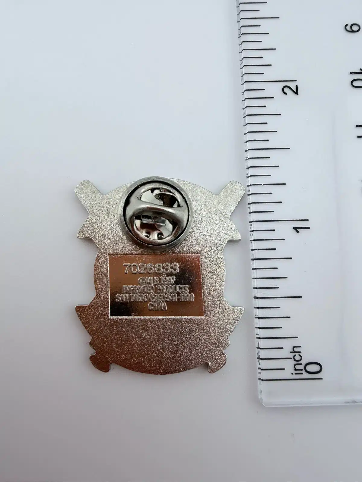 Pin measures just over 1 inch in width by 1.25 inches in height.