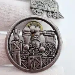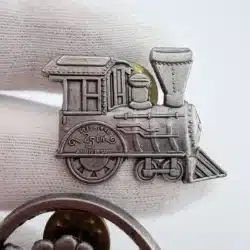 This set includes two Hallmark 1998 pins. One pin features a standalone train design, highlighting the classic charm of a locomotive in a simple, focused layout that reflects timeless holiday imagery. This pin measures in at just over 1 inch in width and just under 1 inch in height.