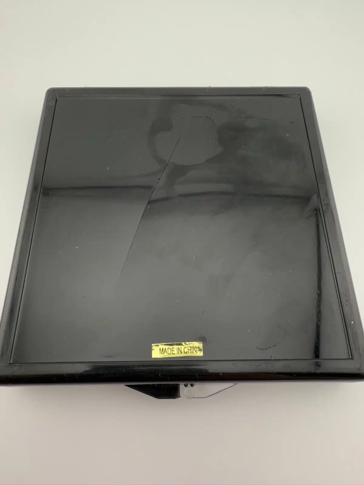 Main 3 pins are all in great condition. Lower horizontal badge pin does have paint loss and other marks. Case is cracked on rear and scuffed on both sides. Case does not close perfectly.