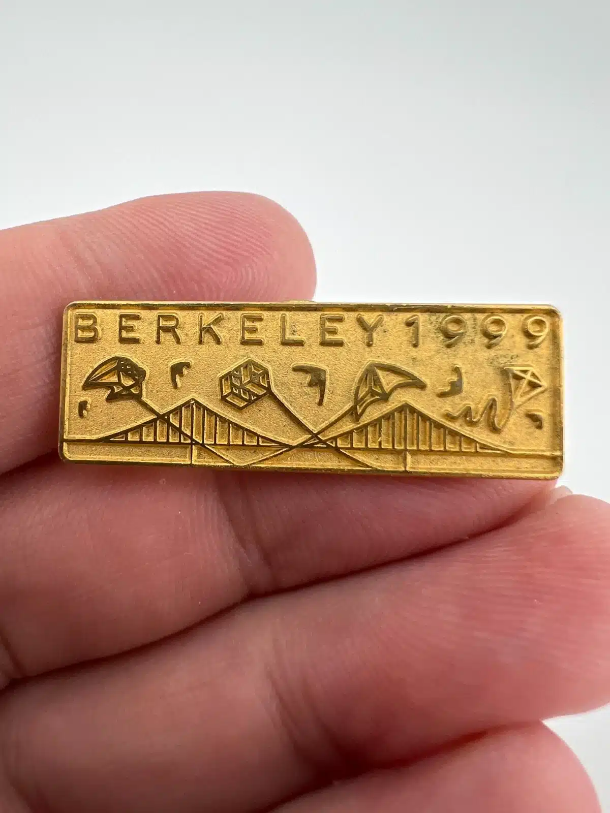 1999 Berkeley Kite Festival Gold Tone Collectors Pin with Golden Gate Bridge