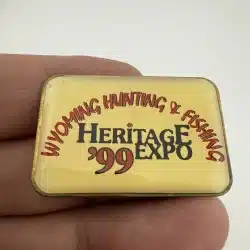 Promotional pin from the 1999 Wyoming Fishing & Hunting Heritage Expo.