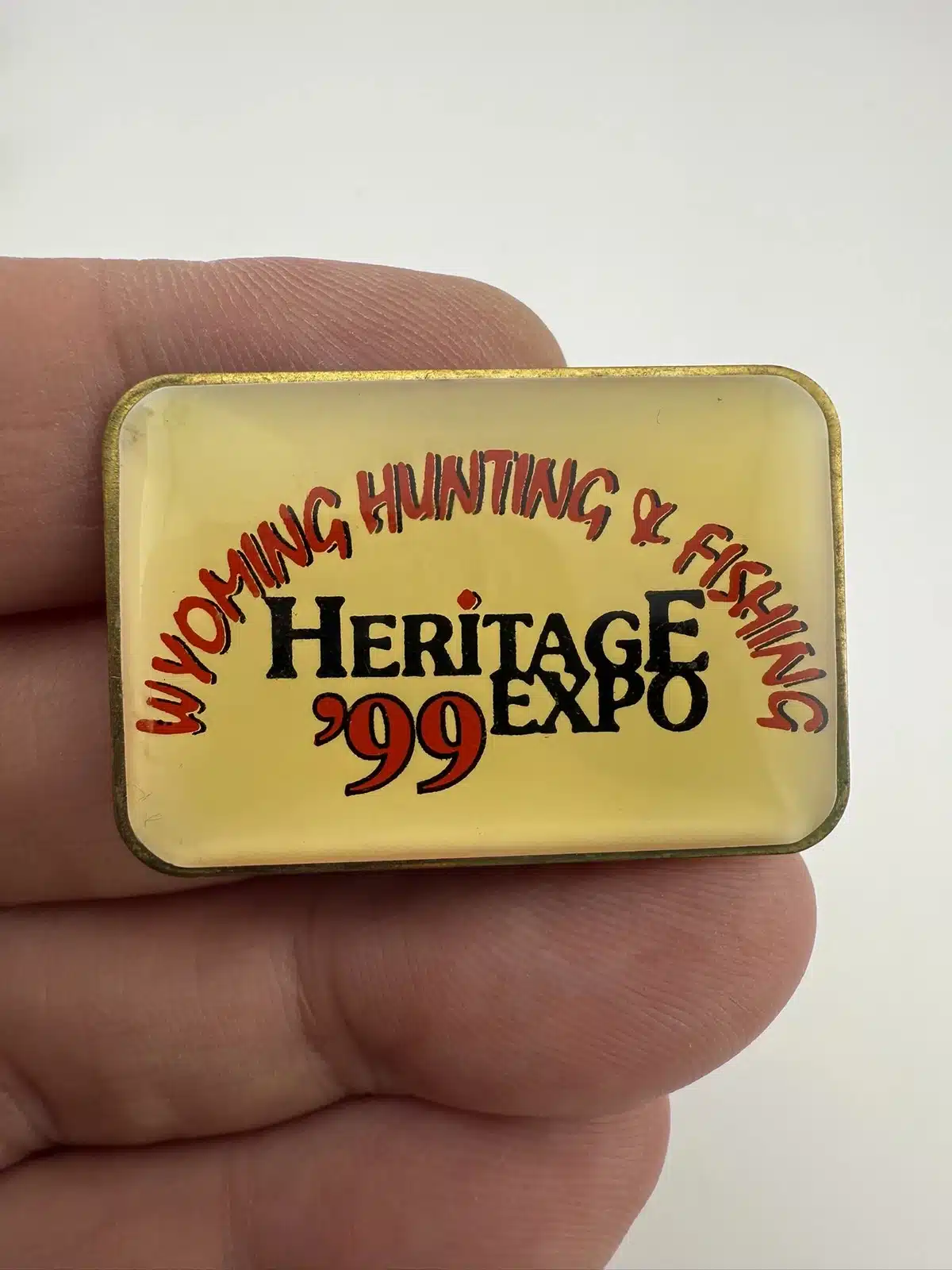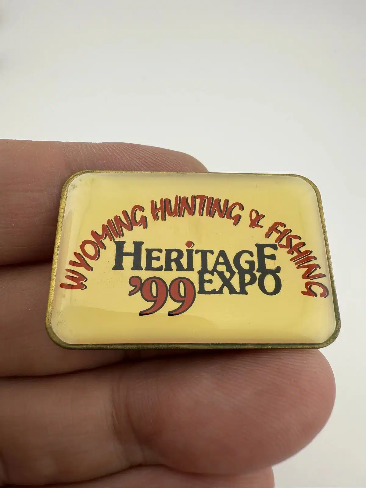 Promotional pin from the 1999 Wyoming Fishing & Hunting Heritage Expo.