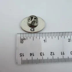 The pin measures approximately 1 inch in width by 3/4 inch in height.