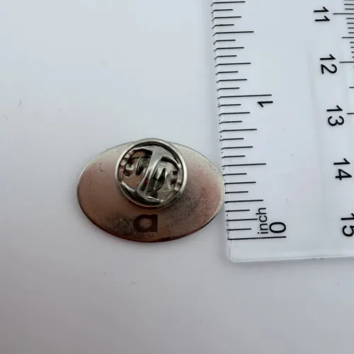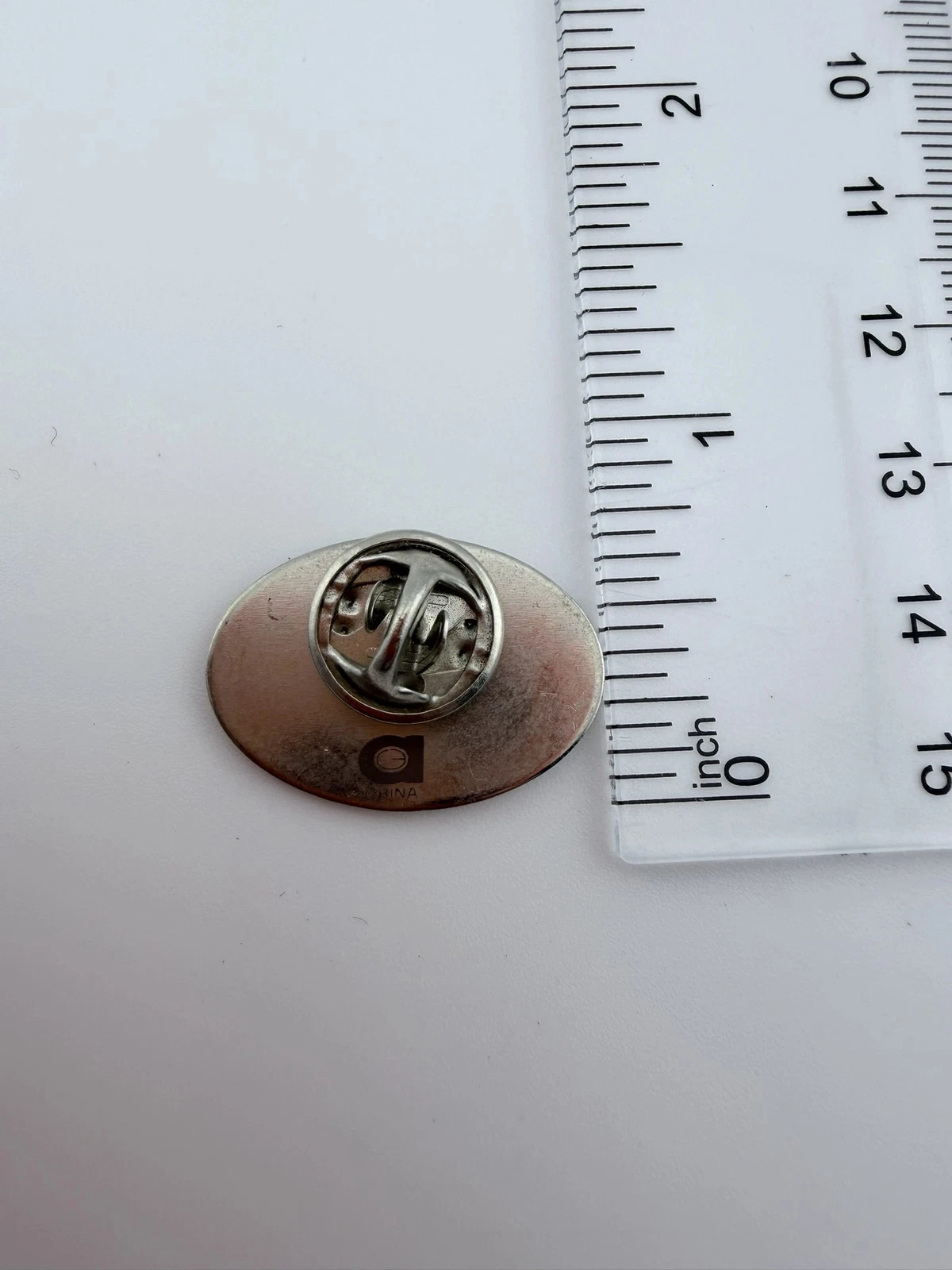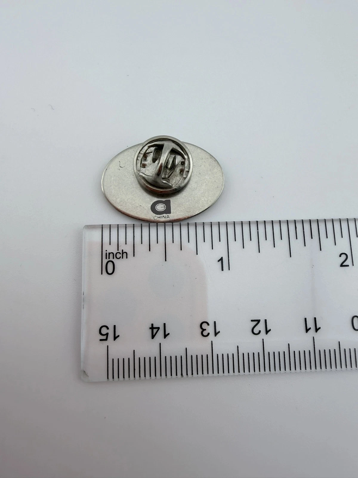 The pin measures approximately 1 inch in width by 3/4 inch in height.