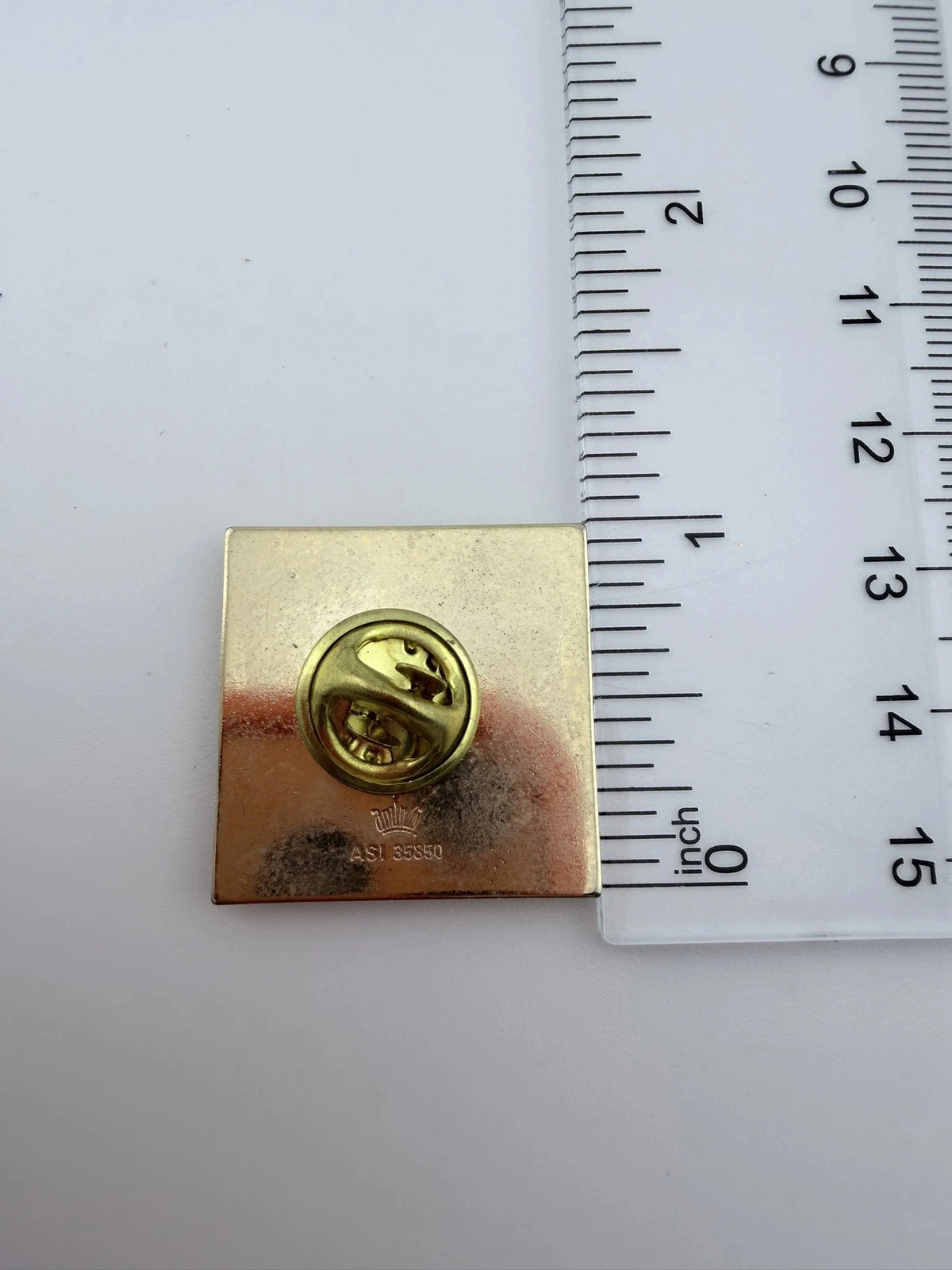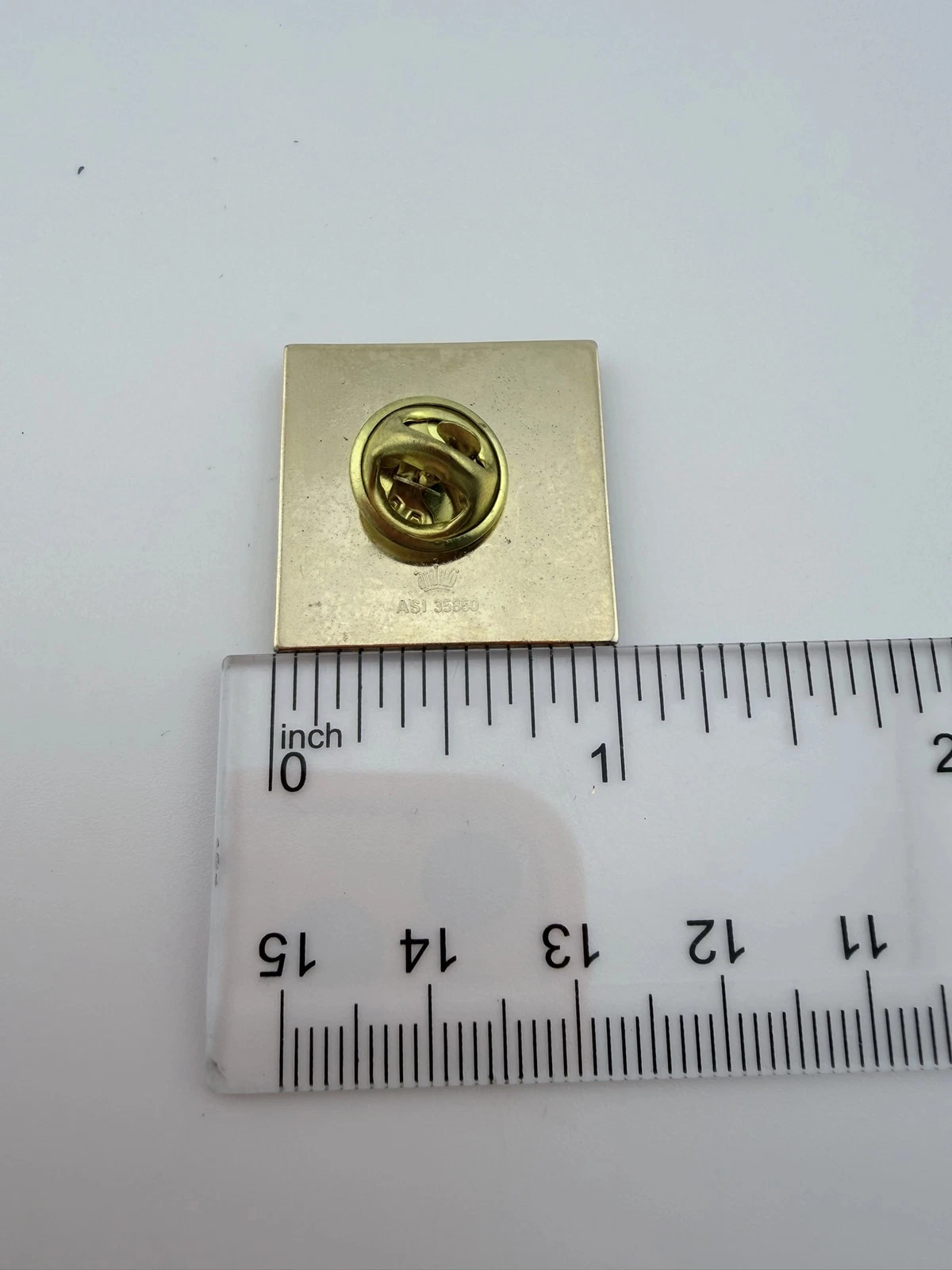 The pin measures approximately 1 inch in width by 1 inch in height.