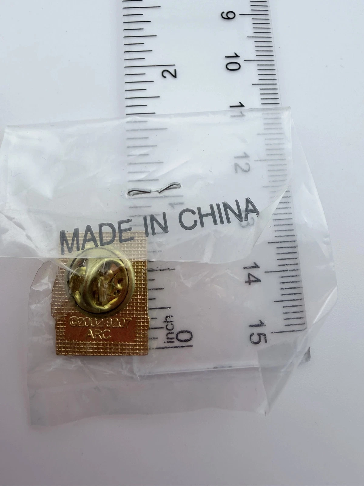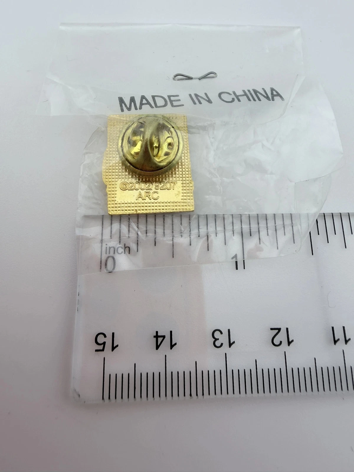 The pin measures approximately 5/8 inch in width by 3/4 inch in height.