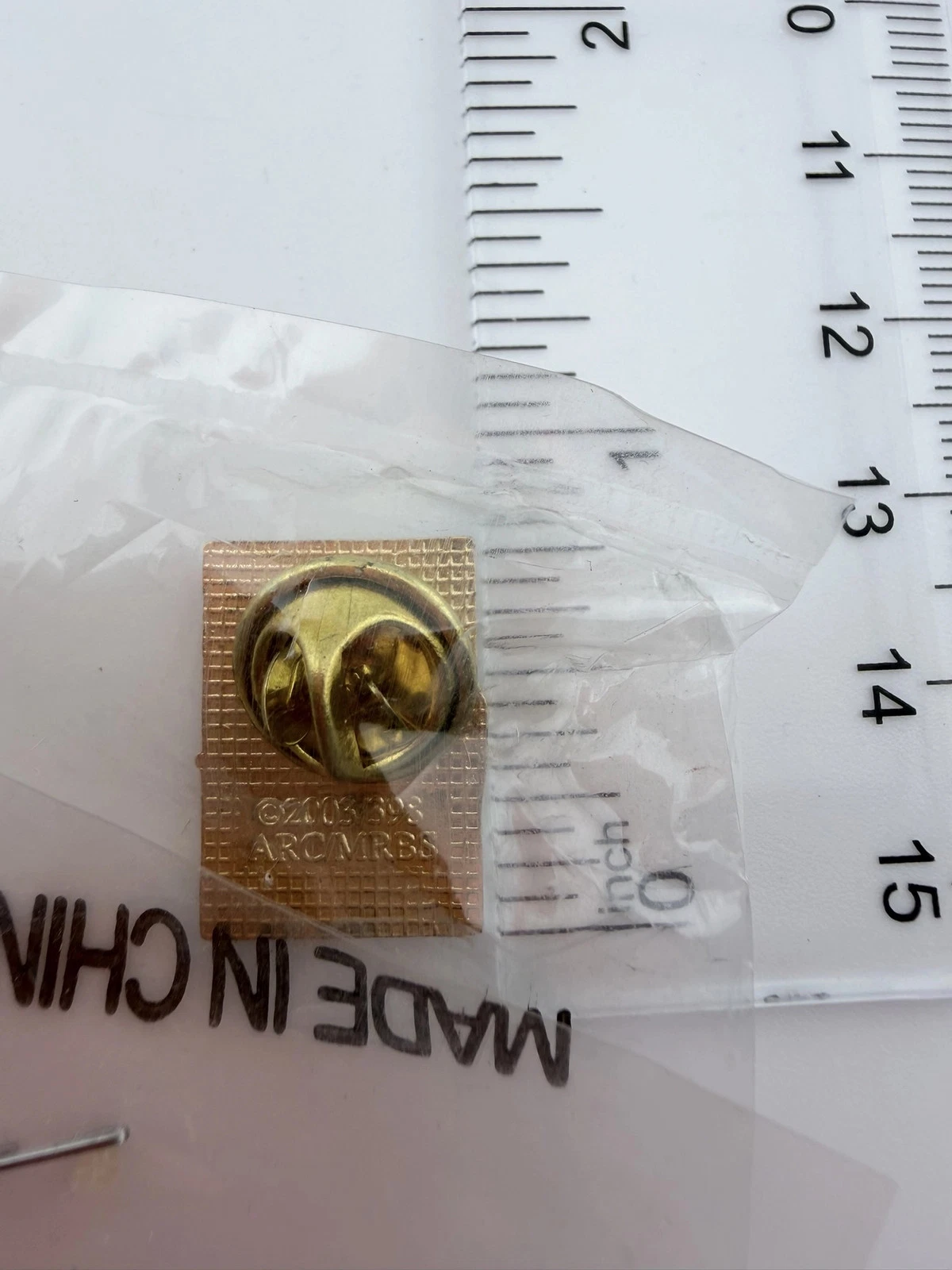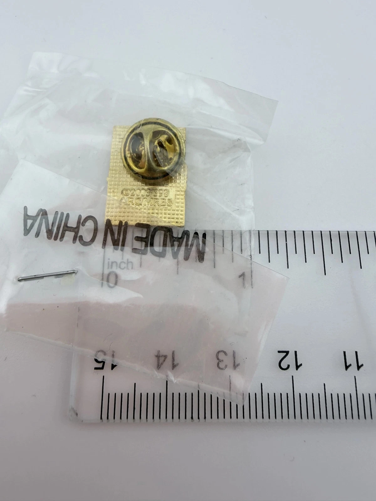 The pin measures approximately just over 1/2 inch in width by 3/4 inch in height.