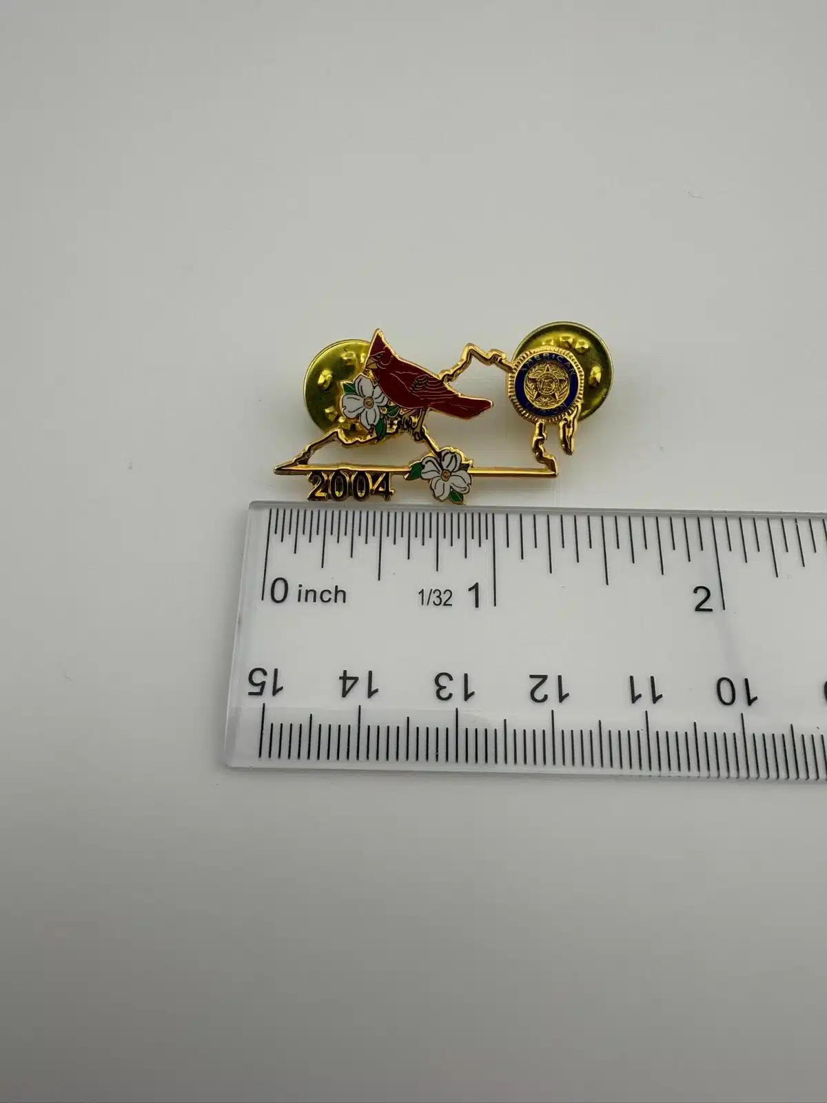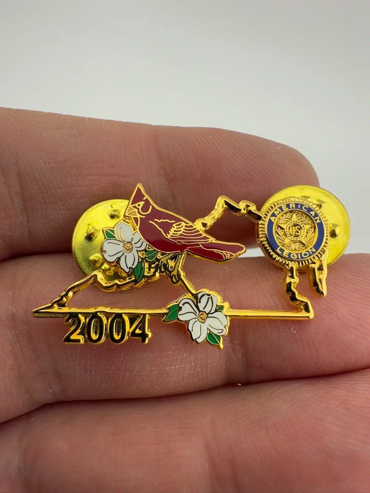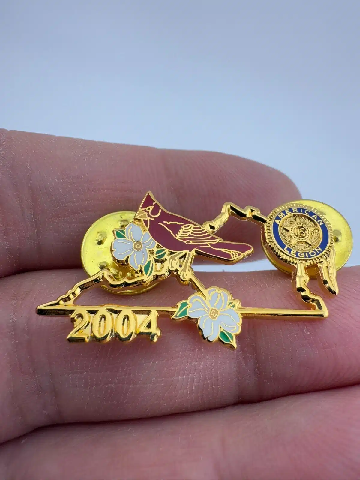 2004 American Legion Lapel Hat Pin with Cardinal and Flowers