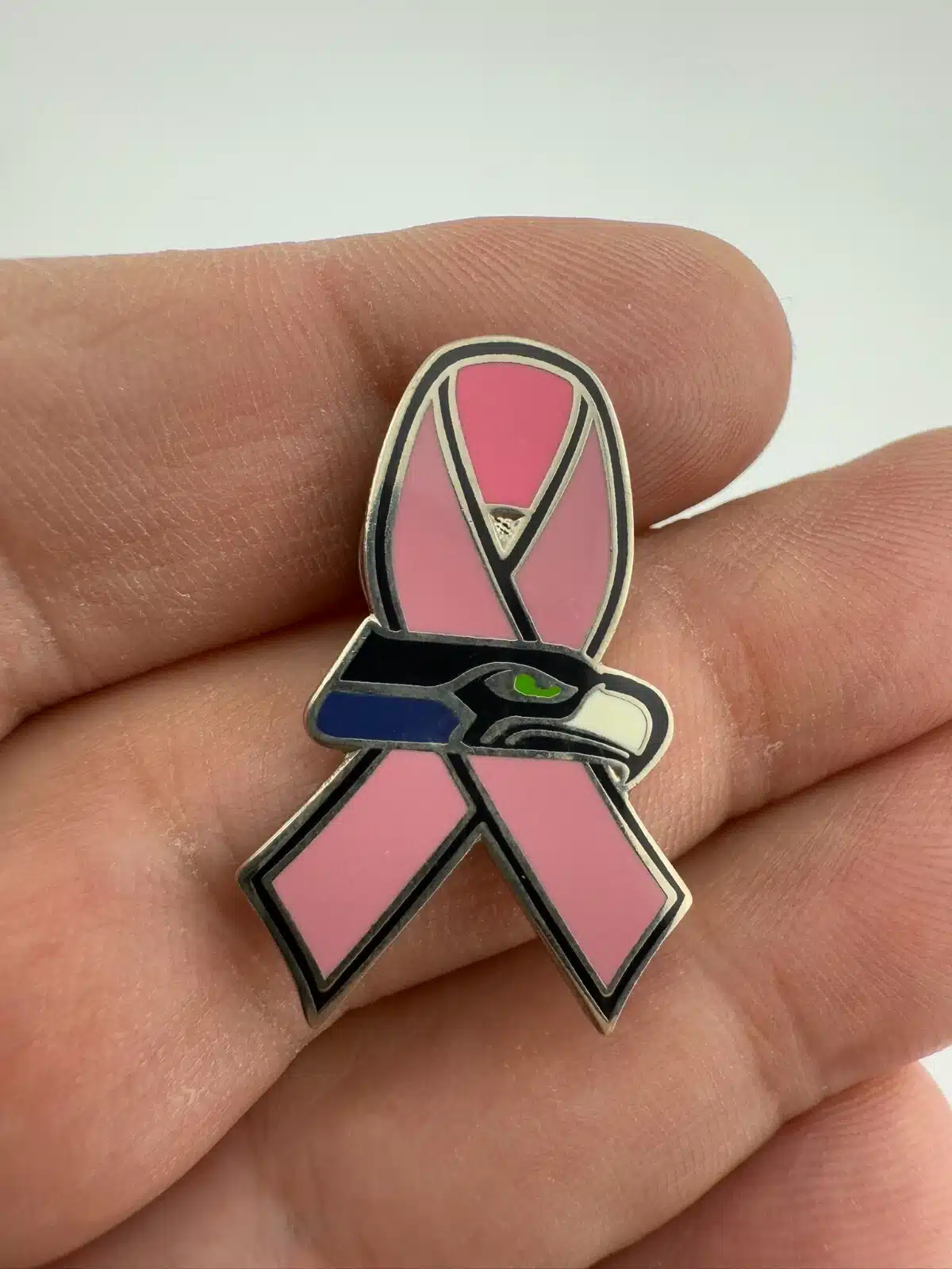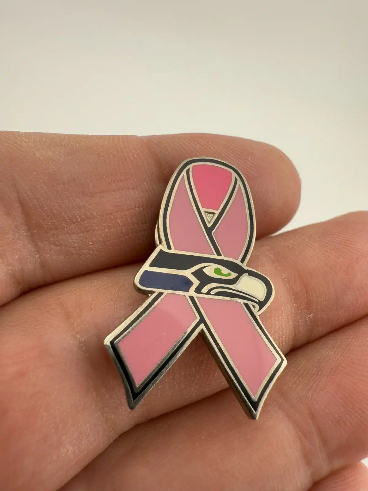 2005 Seattle Seahawks Pink Ribbon Pin – Breast Cancer Awareness – 50% To SGKOMEN