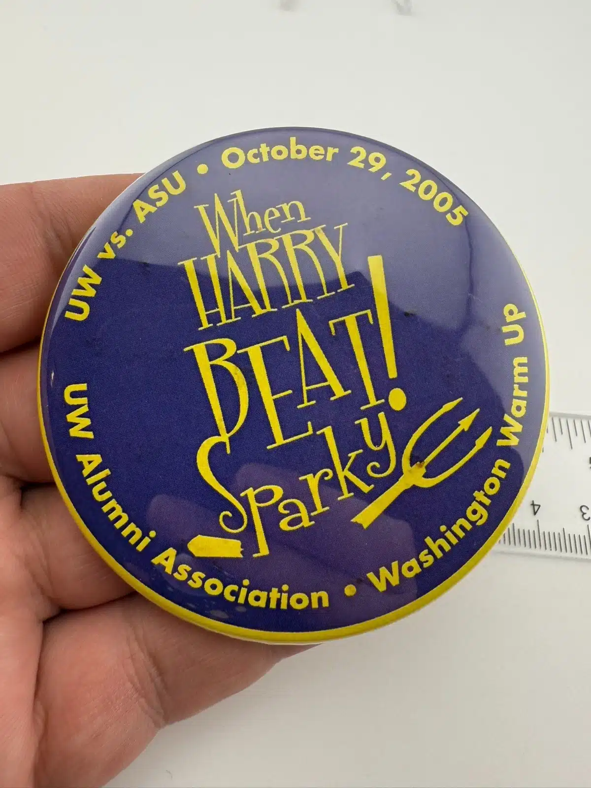 2005 UW Alumni Association UW vs. ASU When Harry Beat Sparky! 3″ Pinback Button