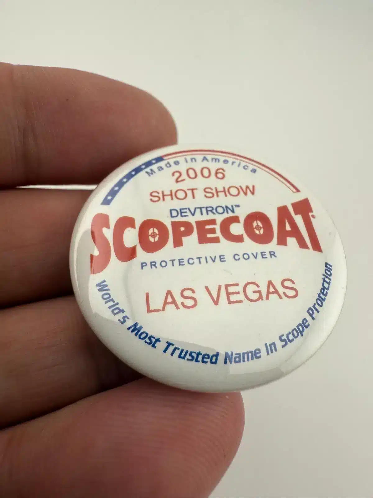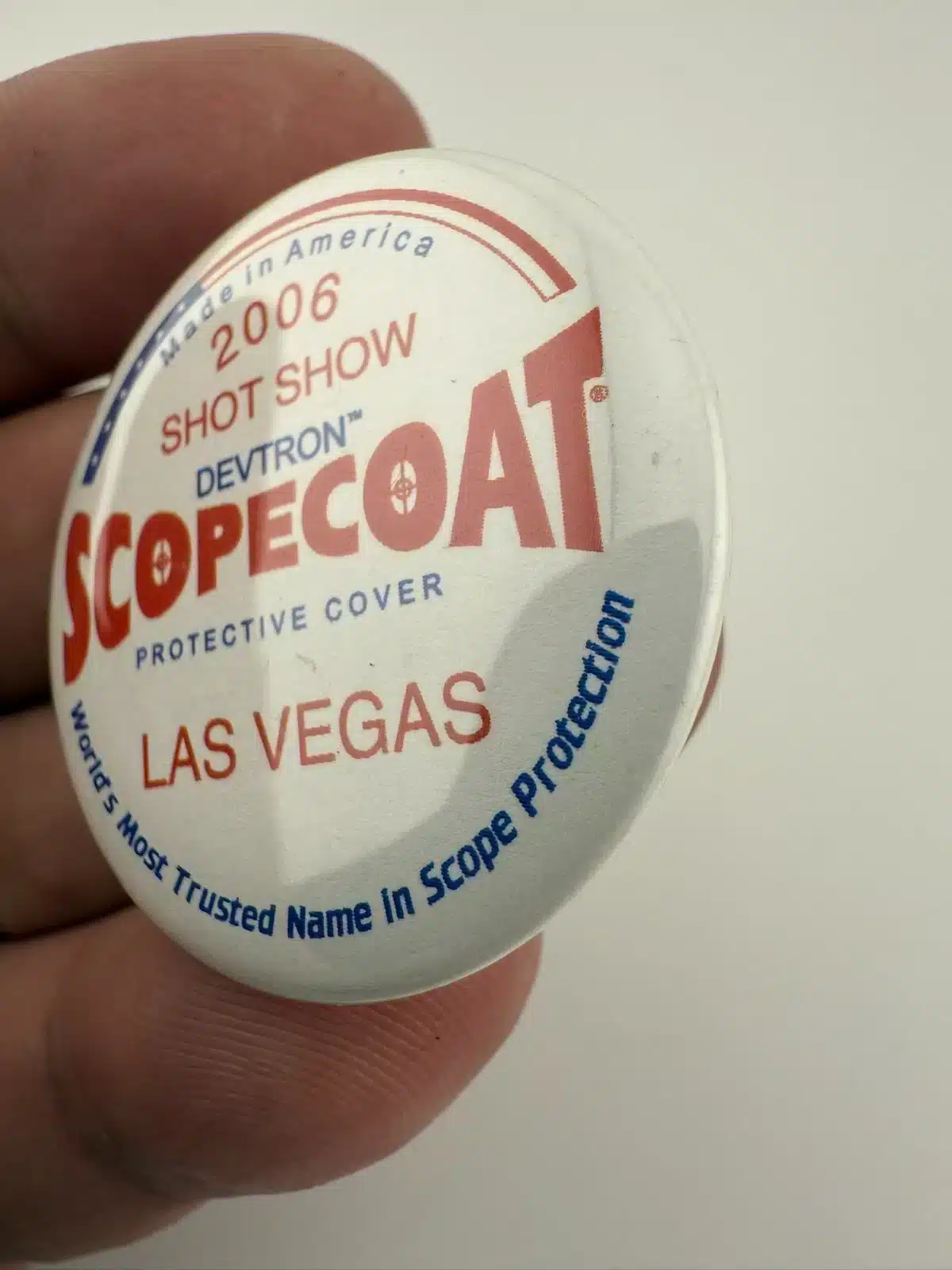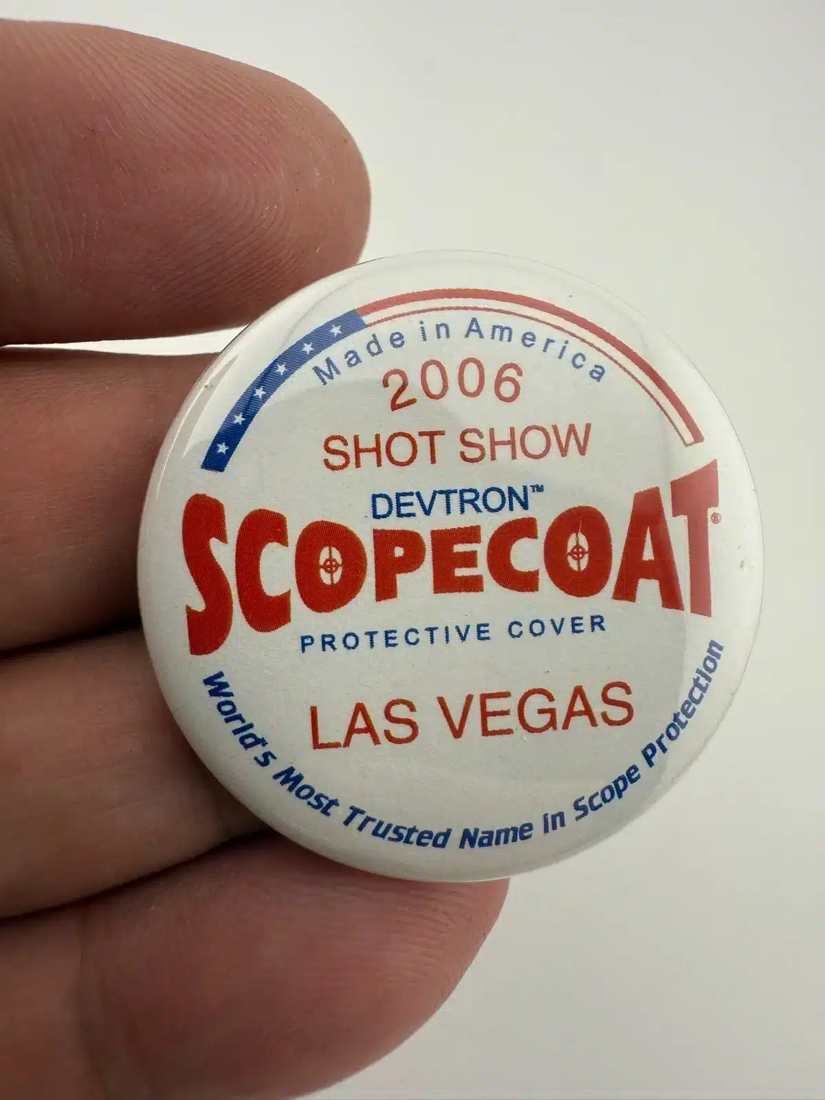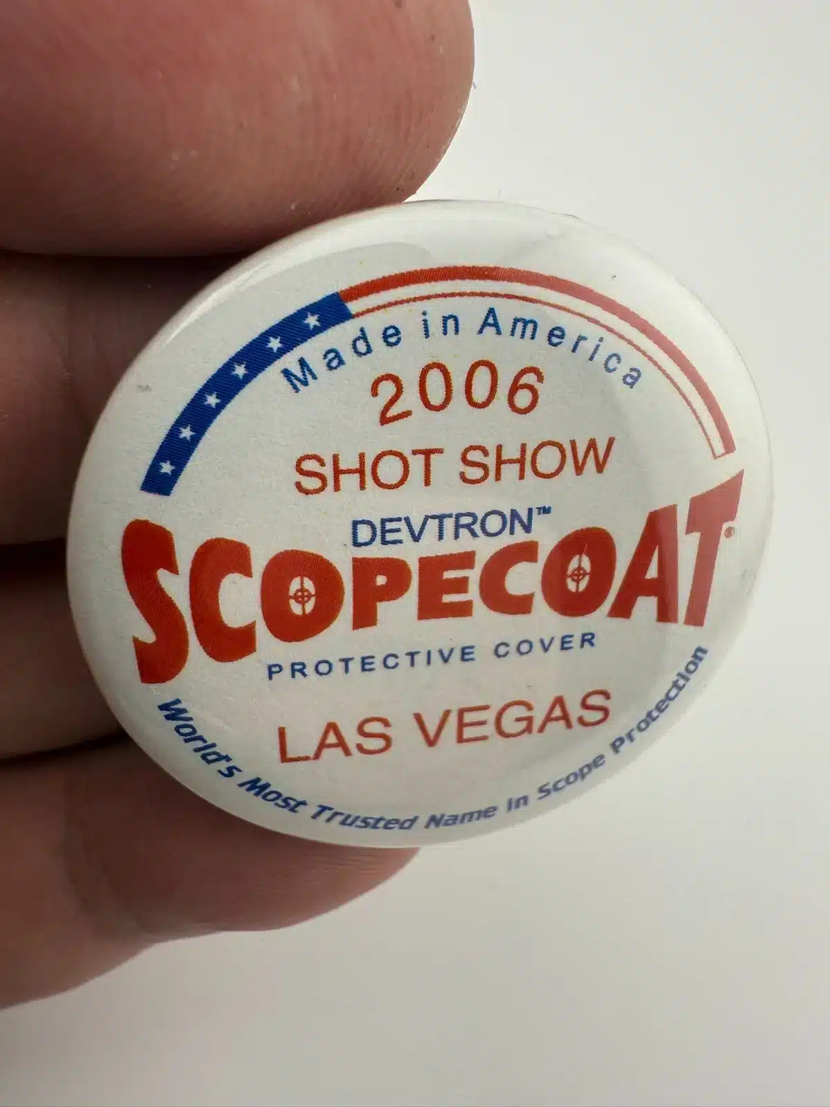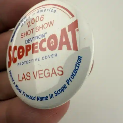 2006 Las Vegas Shot Show Devtron Scopecoat Protective Cover Pinback Button