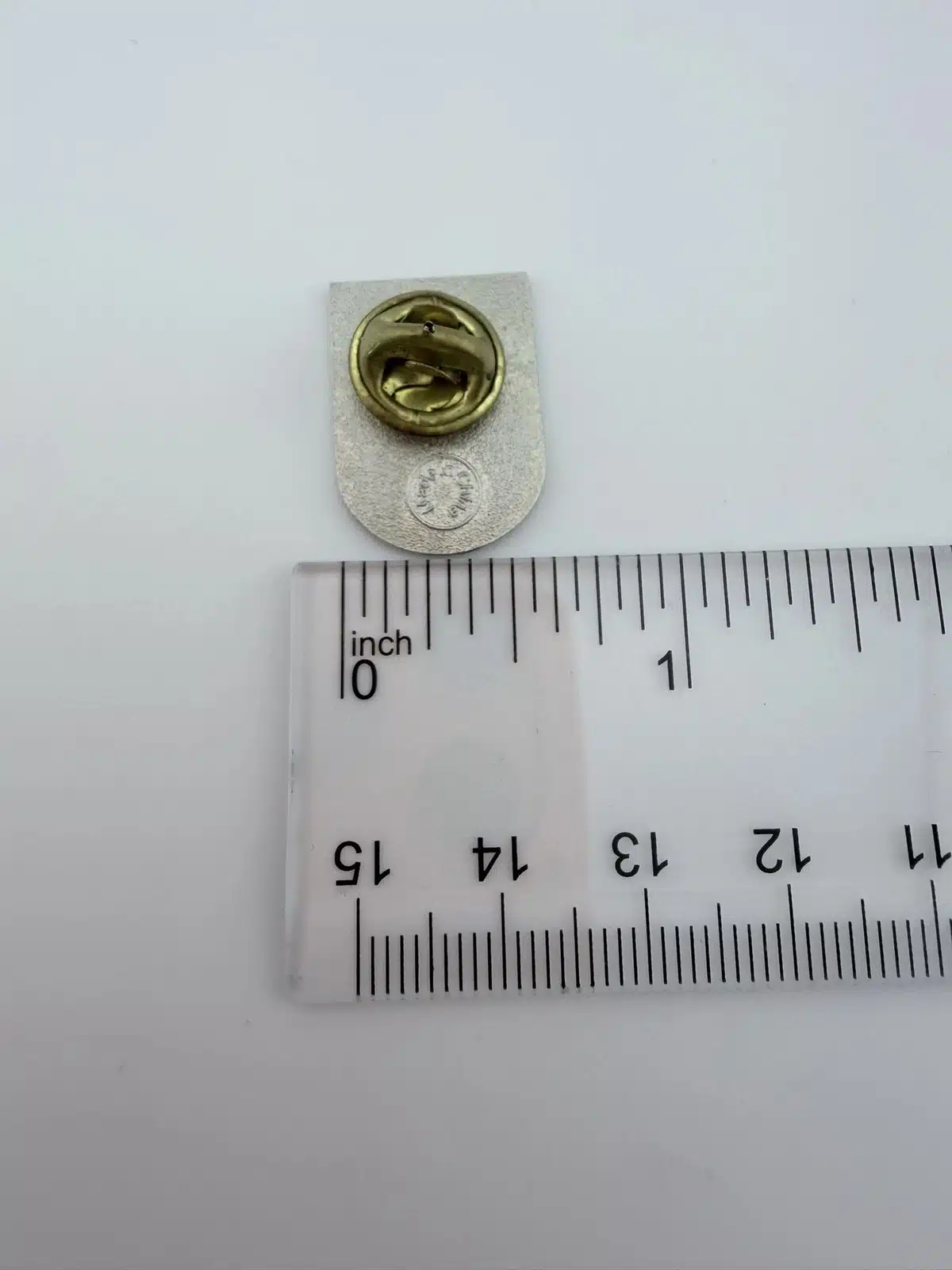 Pin measures approximately 5/8 inch in width by just under 1 inch in height.