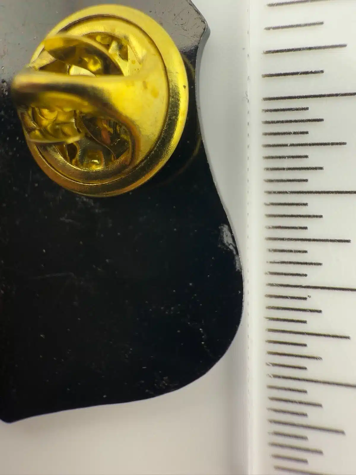 Used with marks and a ding on the rear of the pin (see last phone). Please see all photos for exact condition of item and size.