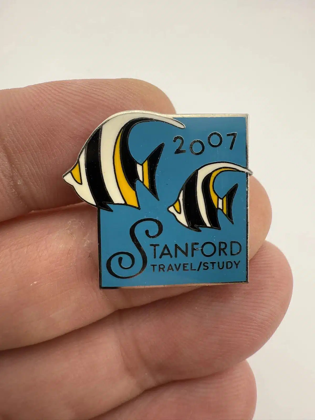 The Seychelles pin from the 2007 Stanford Travel/Study program featuring 2 exotic Moorish idol fish.