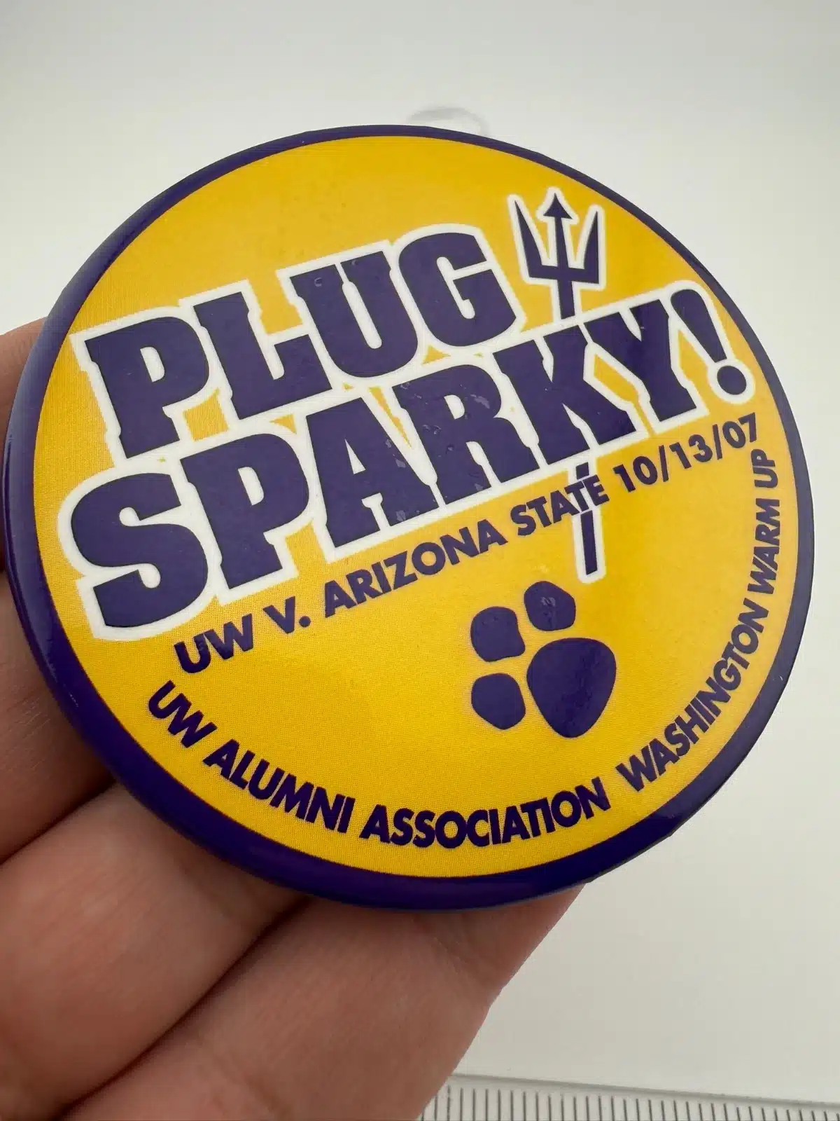 2007 University Of Washington Alumni Association Plug Sparky! 3″ Pinback Button