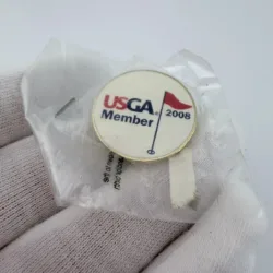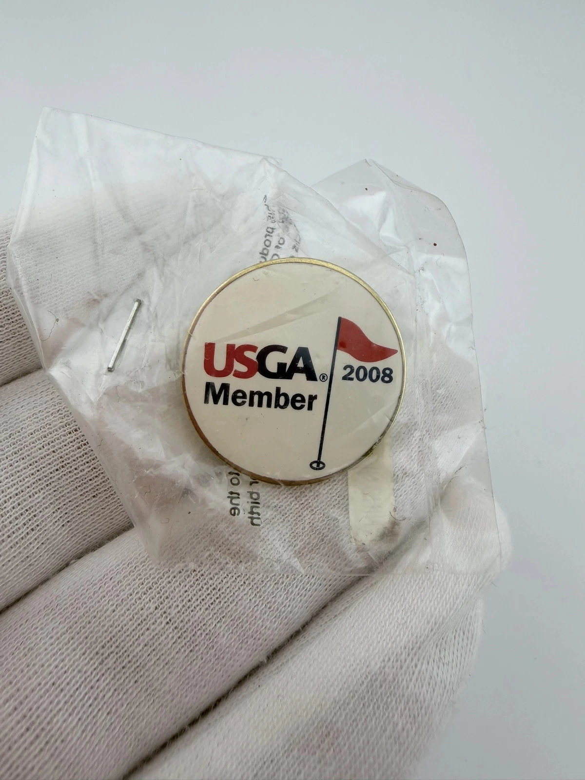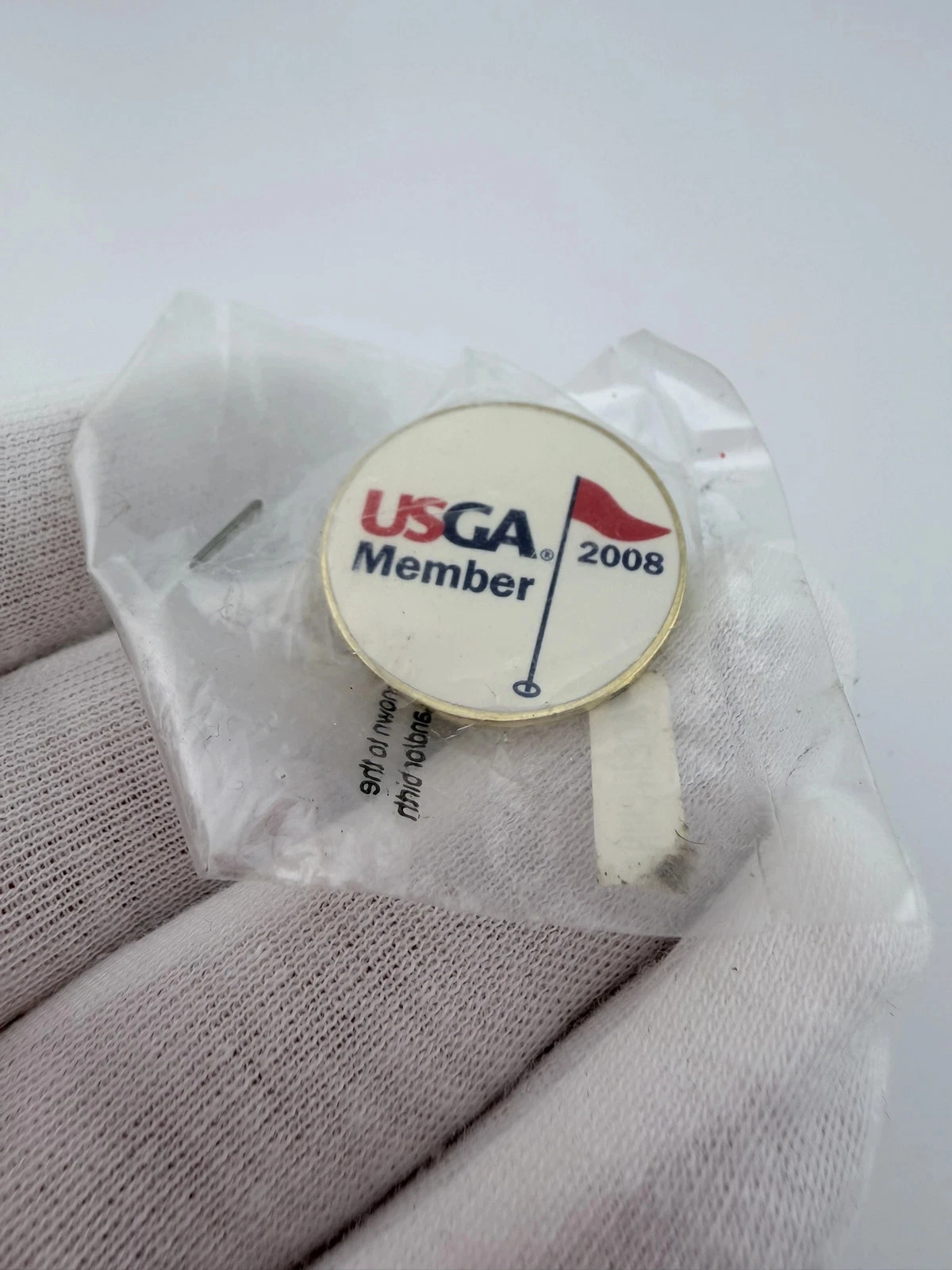 This pin is circular with “USGA Member” on the left and “2008” on the right, separated by a golf cup and flagstick design.