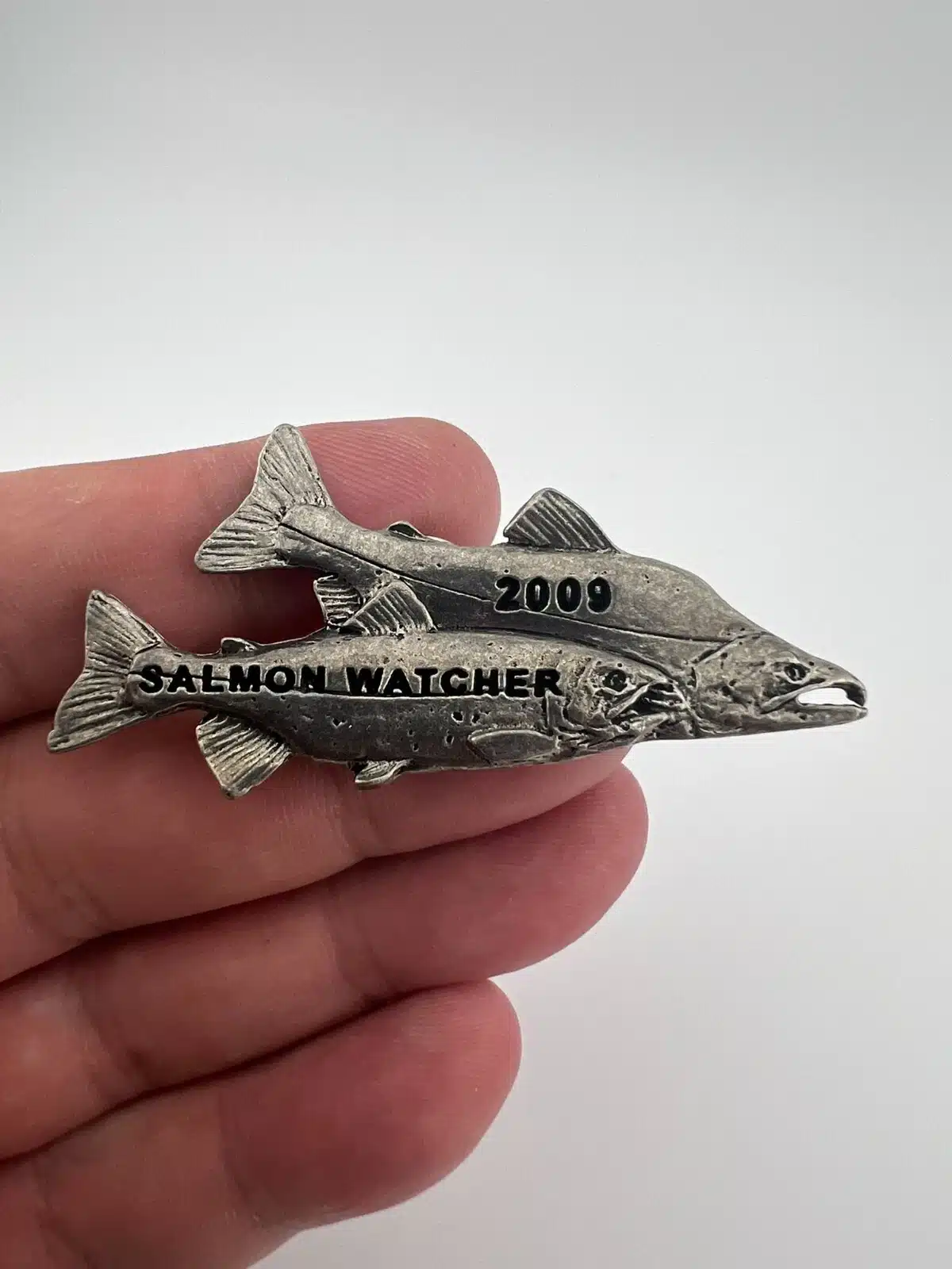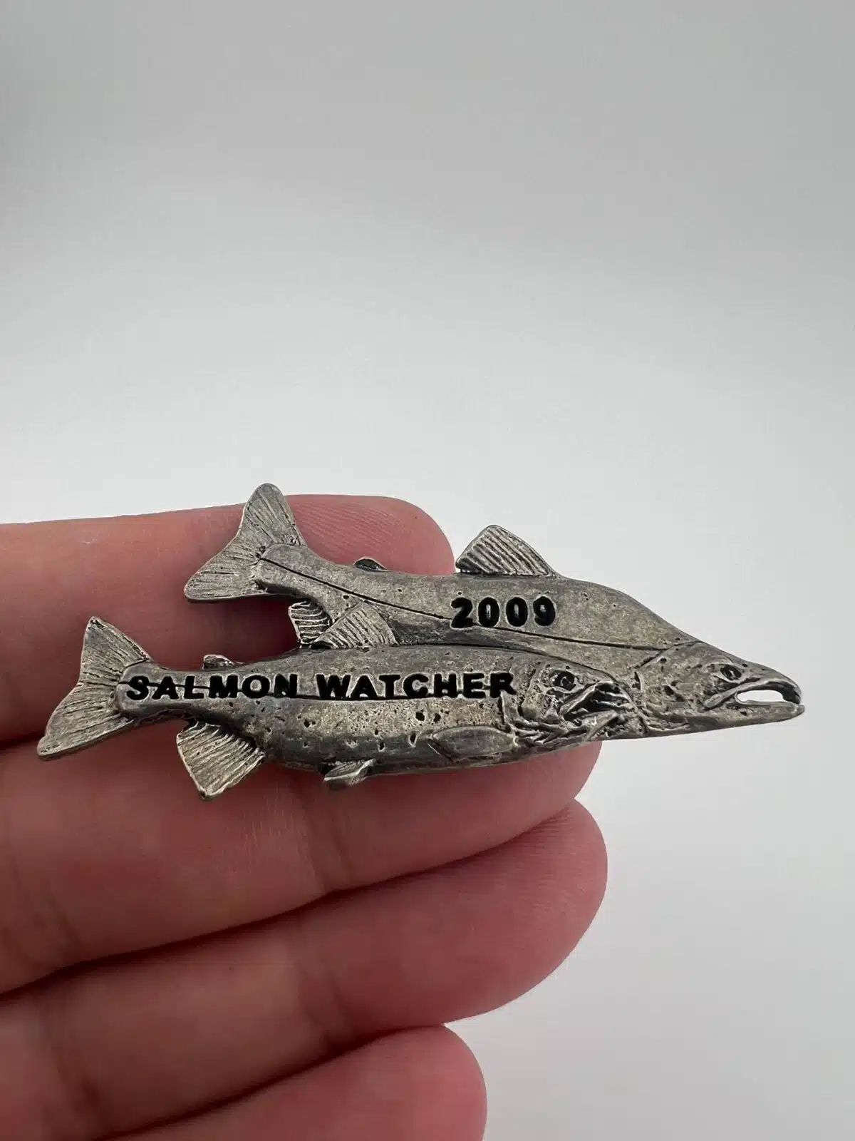 2009 Salmon Watcher Lapel Hat Pin by Creative Castings