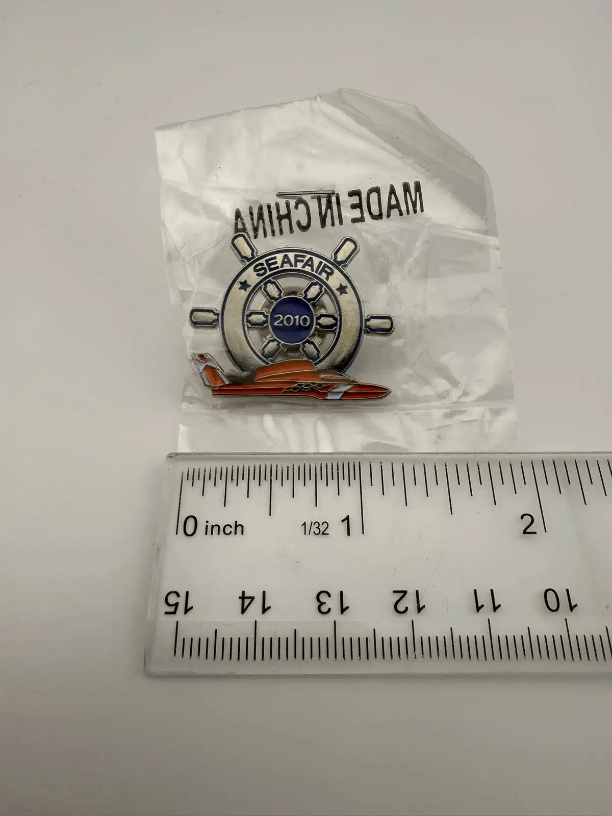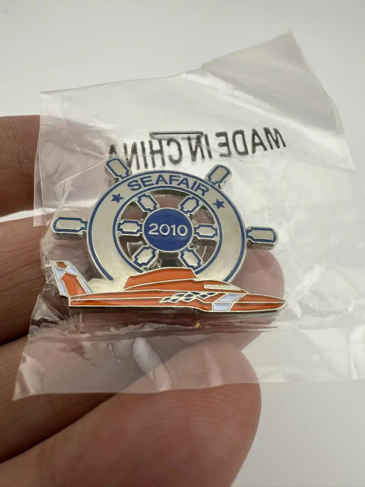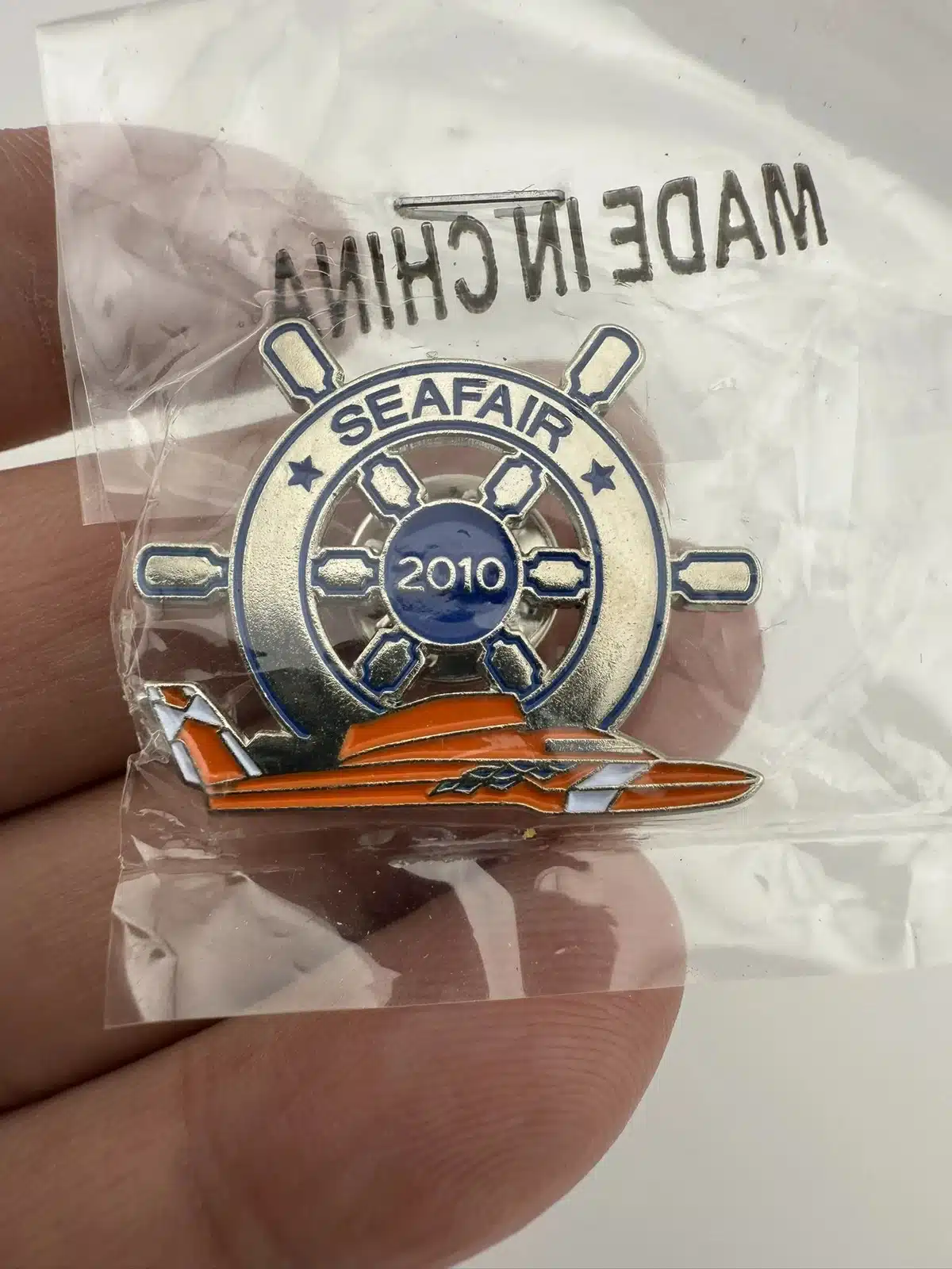 2010 Seafair Lapel Hat Pin – Captain’s Wheel and Orange Hydroplane