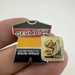 This pin badge features the iconic design of the German national football team’s kit from the 2010 FIFA World Cup held in South Africa. The vibrant colors and distinctive elements of the kit reflect Germany’s rich football heritage and their participation in this prestigious international tournament.