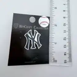 This 2012 New York Yankees logo pin features the iconic NY logo rendered in navy blue enamel, complemented by striking silver tone highlights. The design captures the essence of one of baseball’s most storied franchises, making it a notable piece for collectors.