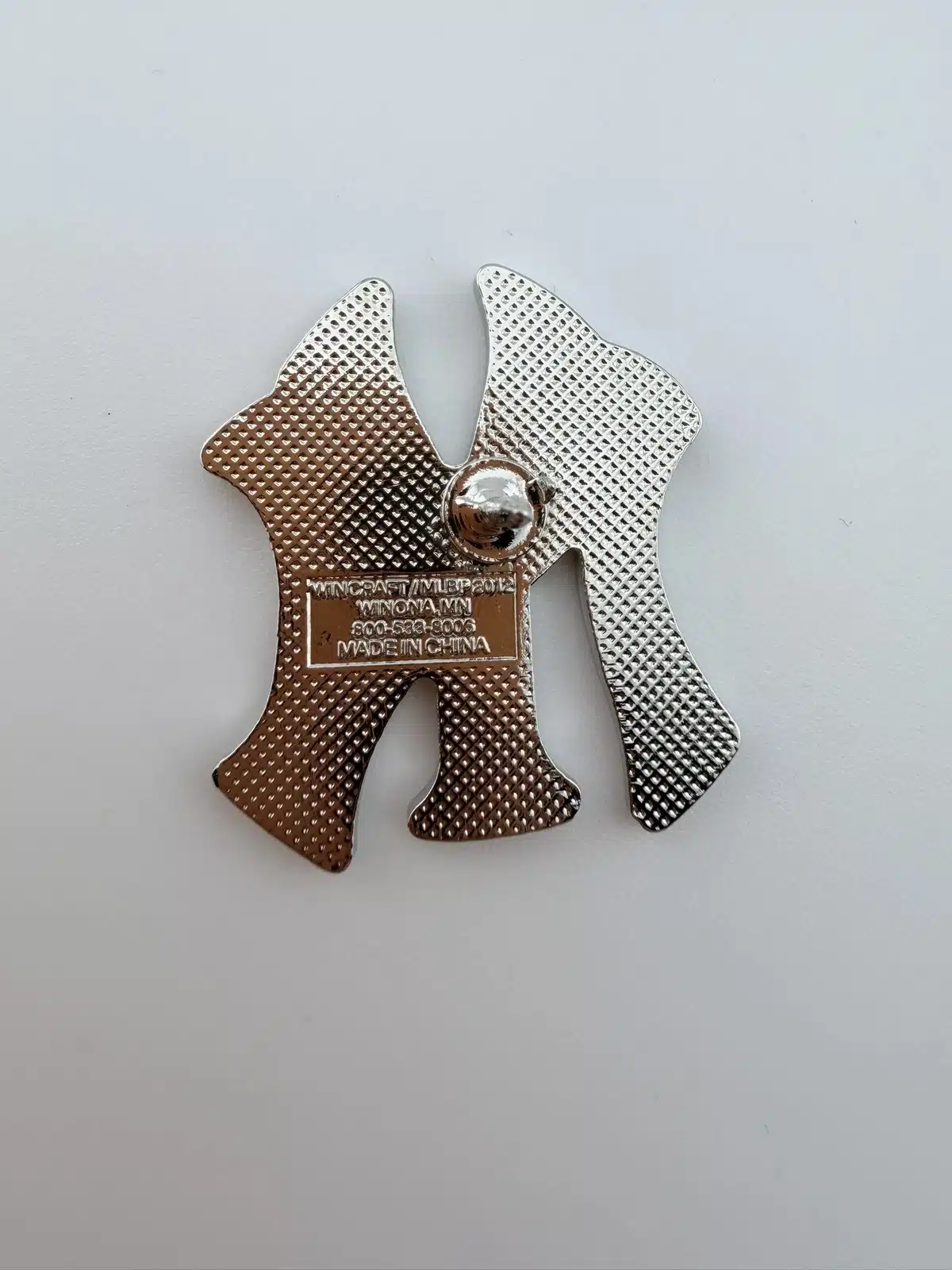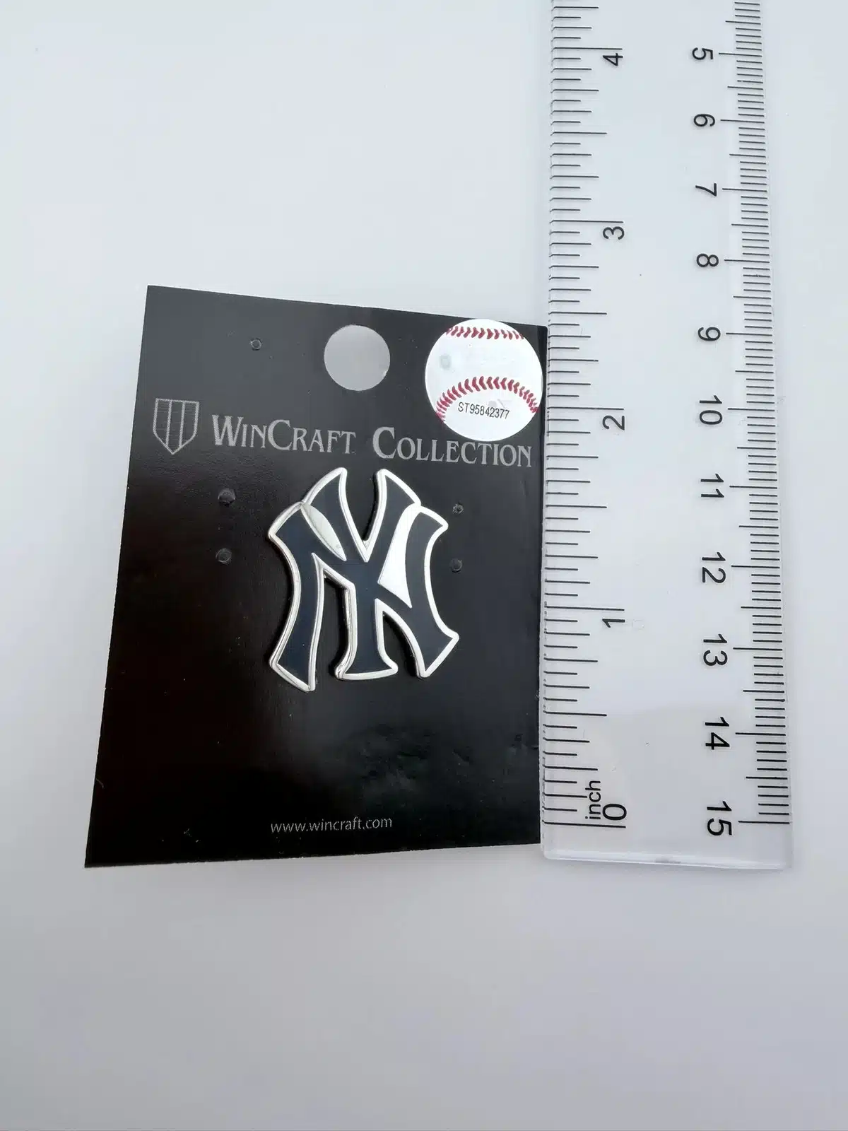 This 2012 New York Yankees logo pin features the iconic NY logo rendered in navy blue enamel, complemented by striking silver tone highlights. The design captures the essence of one of baseball’s most storied franchises, making it a notable piece for collectors.