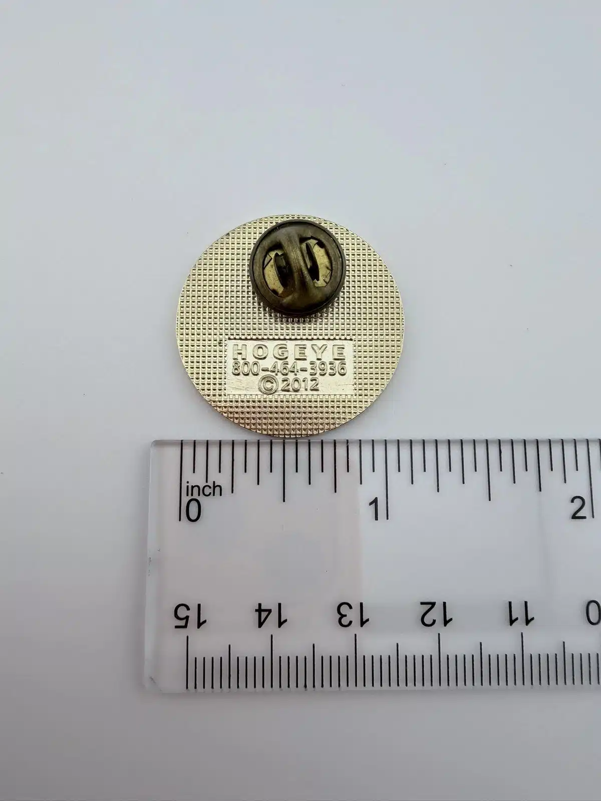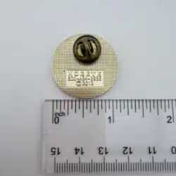The pin measures just over 1 inch in diameter and has a circular shape that frames the detailed artwork nicely, making it a meaningful collectible tied to conservation history.