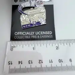 The pin has a silver tone finish and showcases a detailed silver stadium backdrop along with both team logos, making it a great keepsake from that early-season showdown.