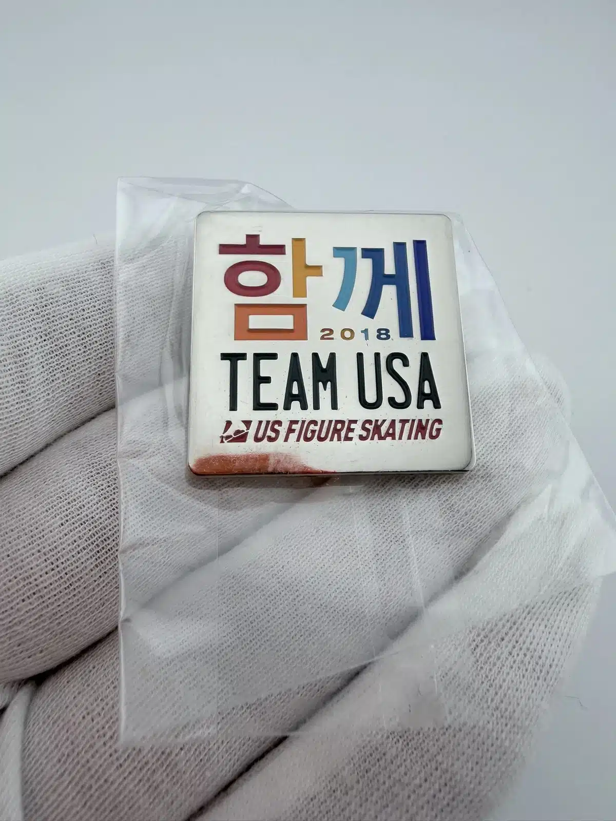 This vibrant lapel hat pin features the word ‘together’ in Korean, accompanied by the year ‘2018’ in a multi-colored design that captures the spirit of the PyeongChang Winter Olympics. Below, the pin proudly displays ‘TEAM USA’ along with US Figure Skating, celebrating the unity and athleticism of the American figure skating team.