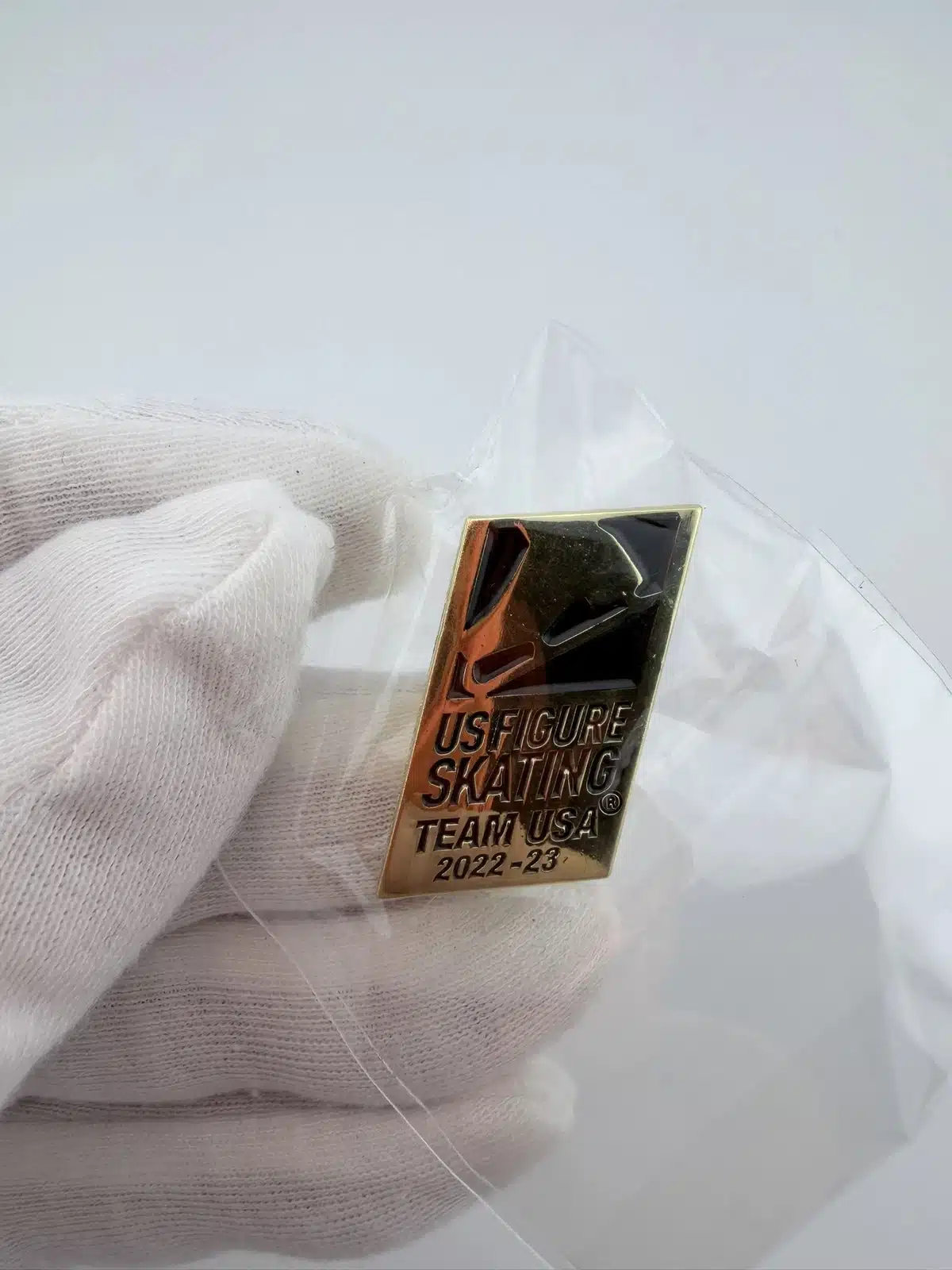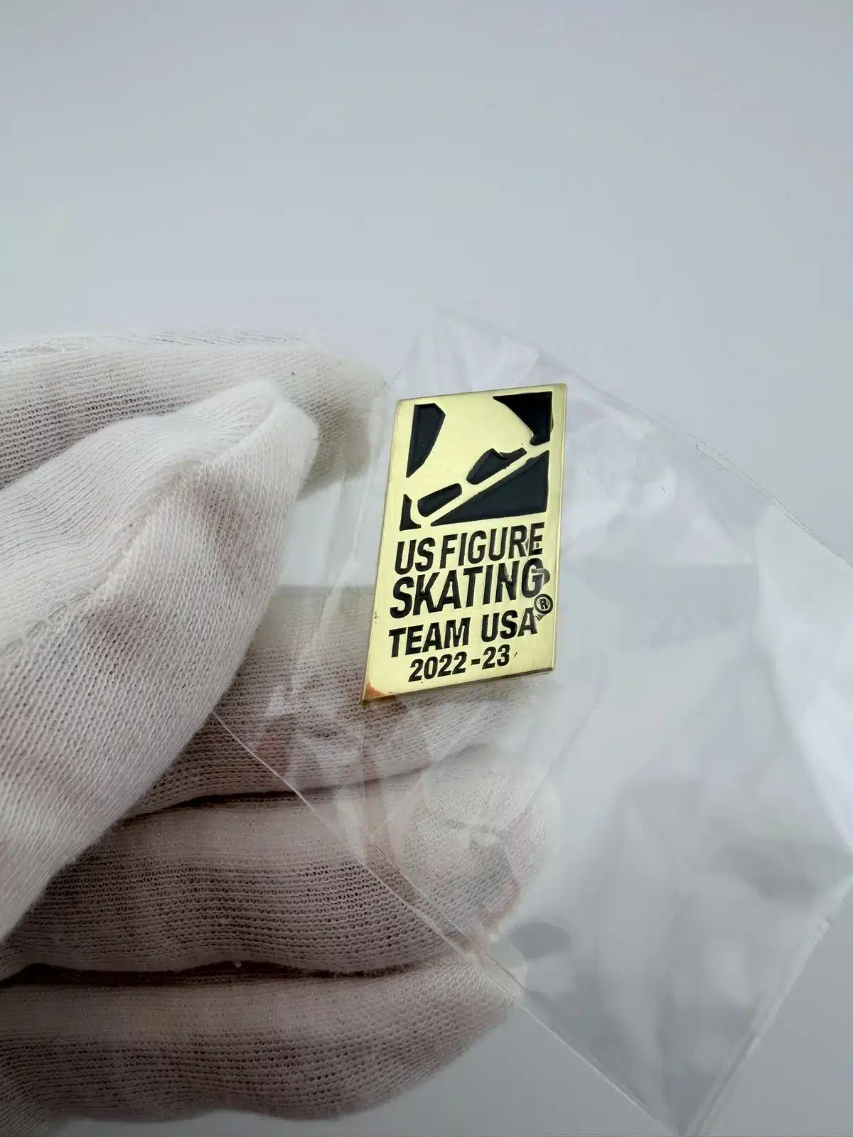 This pin features the official Team USA logo for the 2022-2023 US Figure Skating season, rendered in an elegant gold tone. The design showcases the iconic ice skate emblem, symbolizing American pride and excellence in the sport of figure skating.
